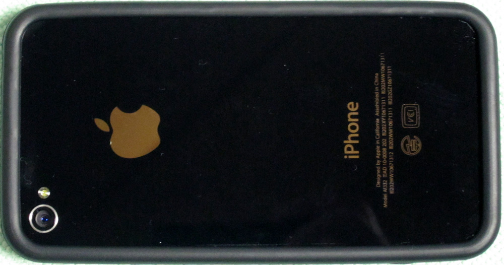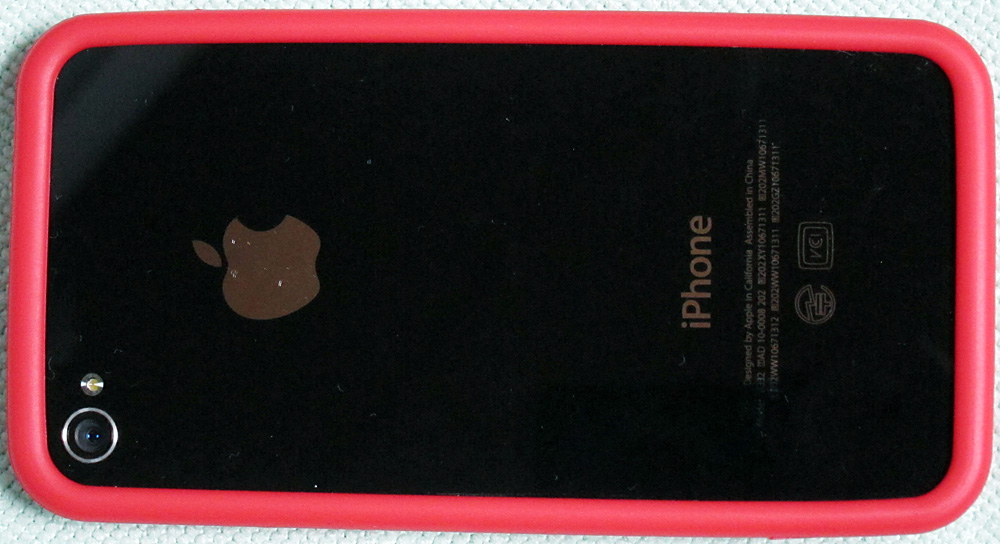 で、この 380円の“バンパーもどき”ですが、黒を iPhone4 に付けてみると