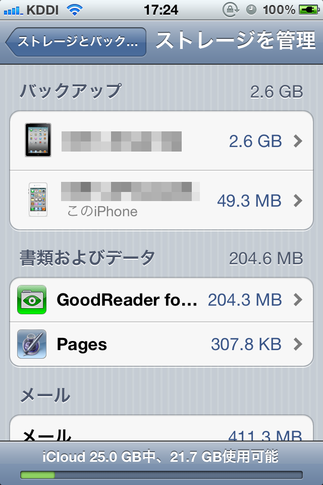 それでも204MB ×2台分よりはグッと iCloud 使用量削減!