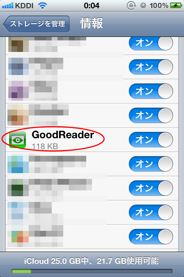 iPhone の GoodReader の iCloud バックアップ消費量は 204MB → 0.118MB まで激減。