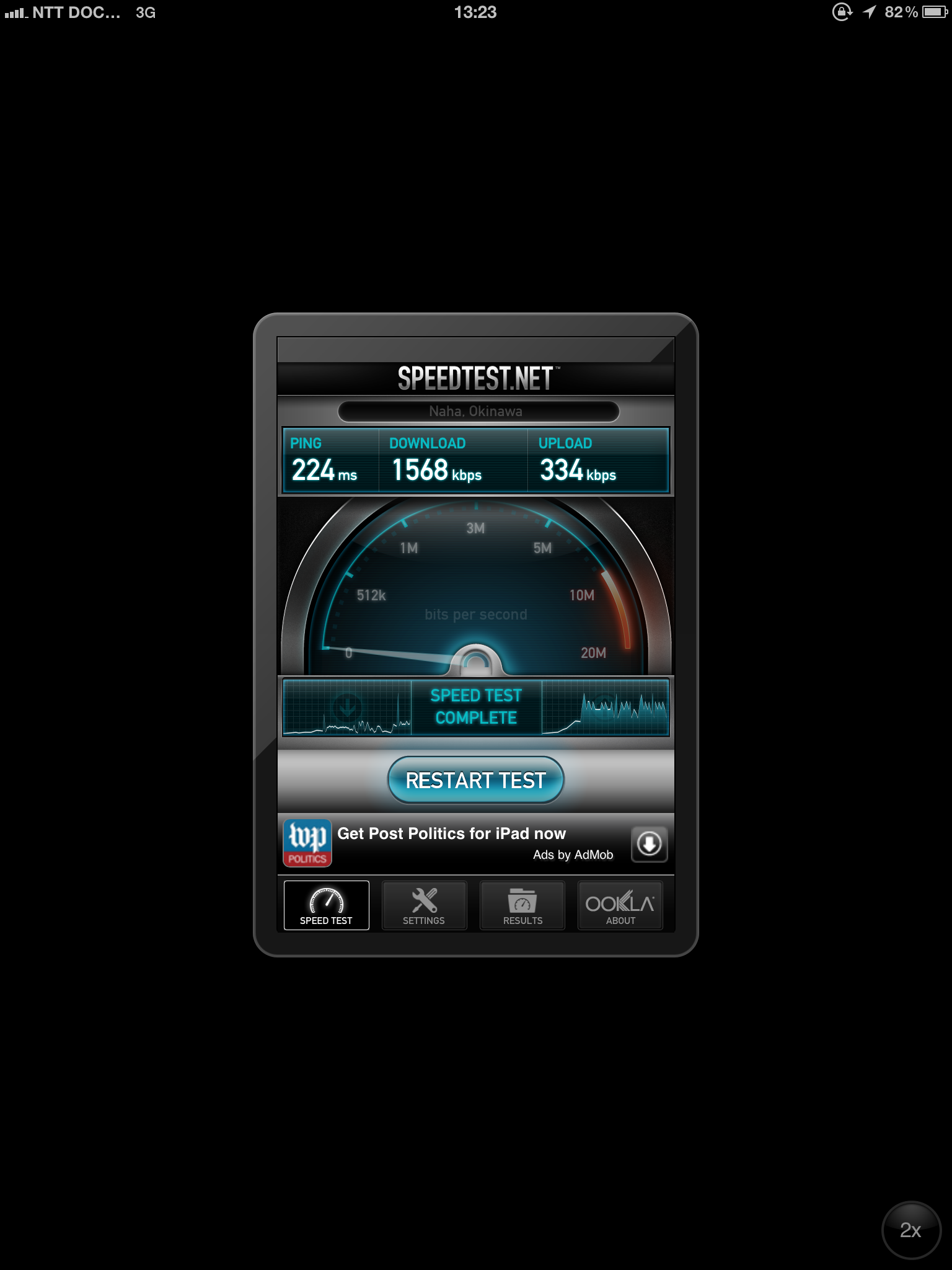 実際に速度計測してみても FOMA 3G の速度です(国内の SPEEDTEST.NET 拠点で唯一マトモだった飯塚サーバーがなくなったので、ソウルと那覇で計測しています。名古屋と東京は使いものにならないので…)。