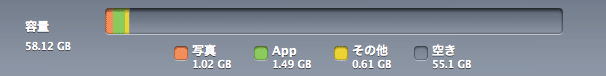 という感じであり、なんかこうスゲーもったいないというか、私自身は「iPhone も iPad も早く 128GB モデル出してくれよ〜」と思っているのに、このスカスカ具合を見るたびに
