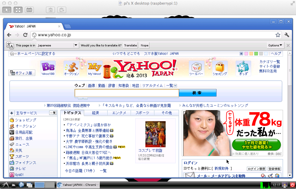 また、Raspberry Pi で最初から入っているブラウザは日本語表示できませんので、Chromium(Chrome のオープンソース版)を入れておくと Raspberry Pi でも日本語でネットブラウズ可能です。