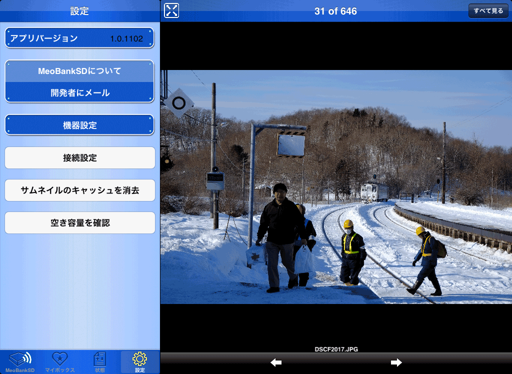 (アプリの設定画面から MeoBankSD の設定画面へ行ける)