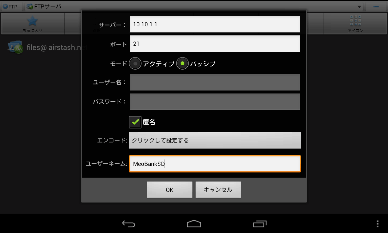 (Android ではファイラーアプリを使ったほうが便利。FTP でのアクセス設定を行ってるところ)