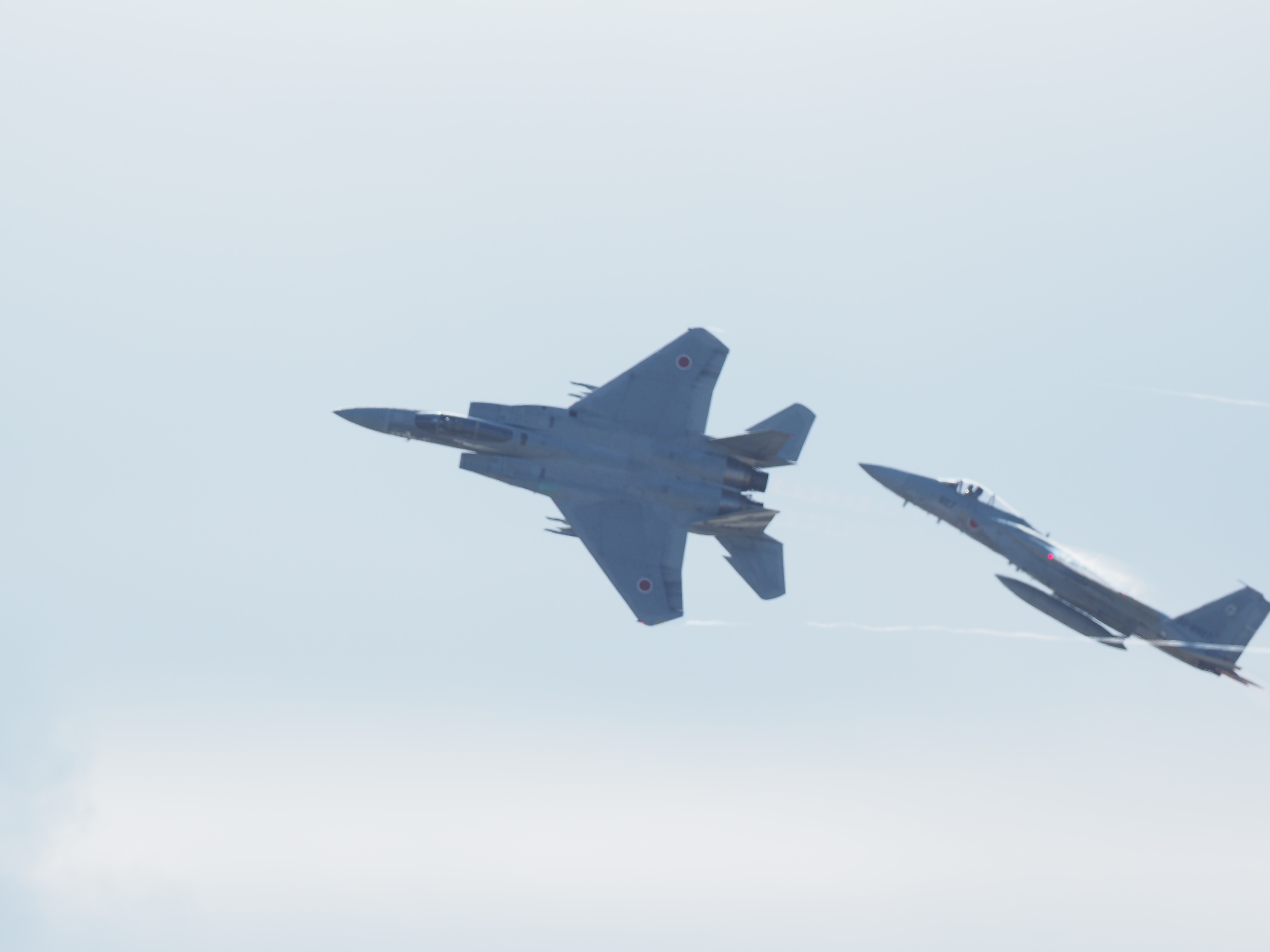 それまでの予行へ行った人の写真やツイートを見ていて、303SQ、306SQ の機動に比べてアグレスの機動は高度が低い、と勝手に思っていたので、600mm でも大丈夫だろうと判断したのですが、実際にはそんなこともなく、テレコン入れるべきでしたね……