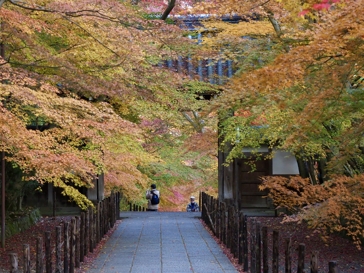 もう紅葉の終盤時期の平日、それも閉山間近の時間帯でしたが(総門を出る頃には入山受付終了でした)、それでも多くの人が訪れていて、もみじ参道は人が切れることのない状況でした。