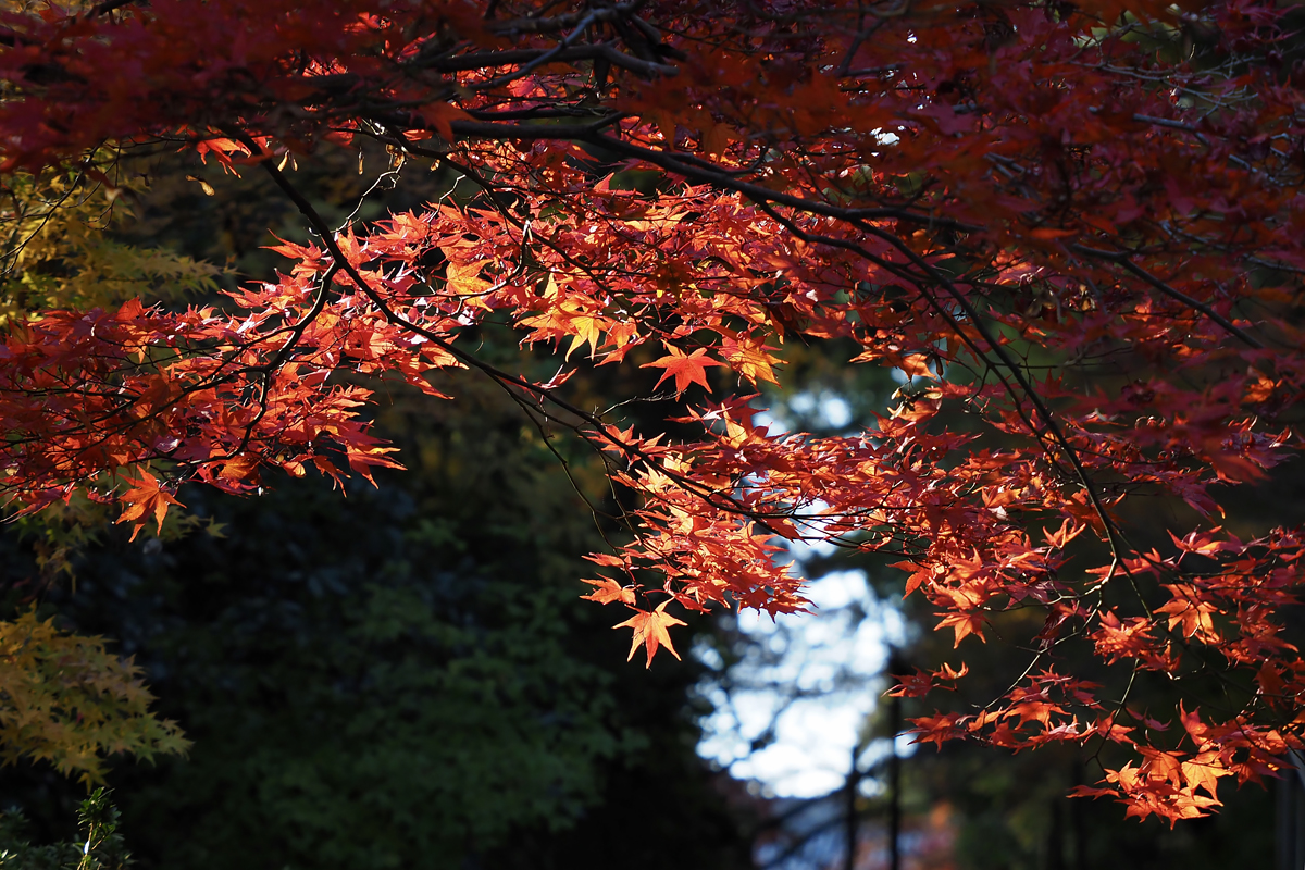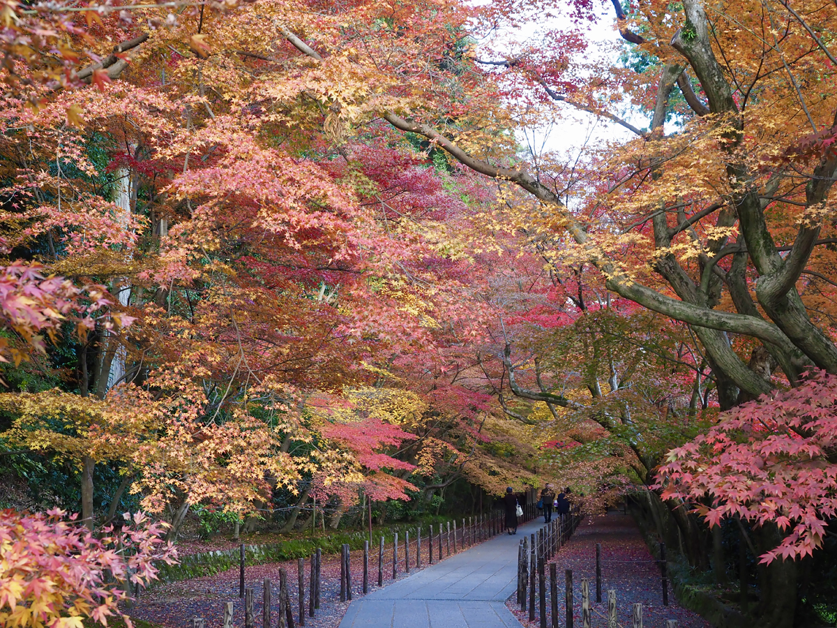紅葉のピークはとうに過ぎて、天気も晴れたり曇ったりな感じでしたが、まだ十分に見応えのある紅葉のトンネル「もみじ参道」でした。眼福眼福 :D