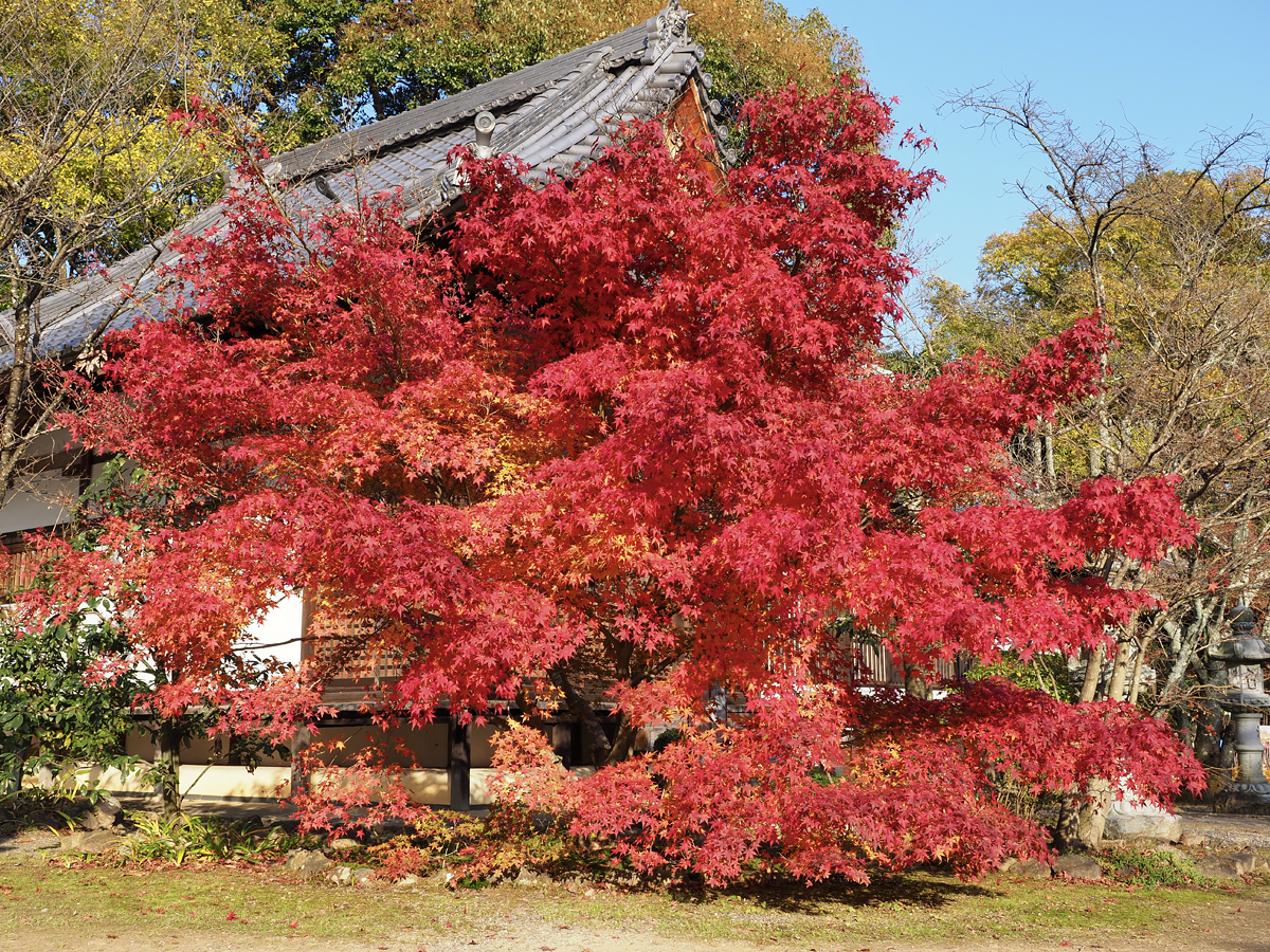 ということで、シーズン最後の長岡京・光明寺の紅葉狩りでした。紅葉だけでなく、阿弥陀堂から御影堂、釈迦堂への堂内巡りも見事ですから、機会があれば是非。