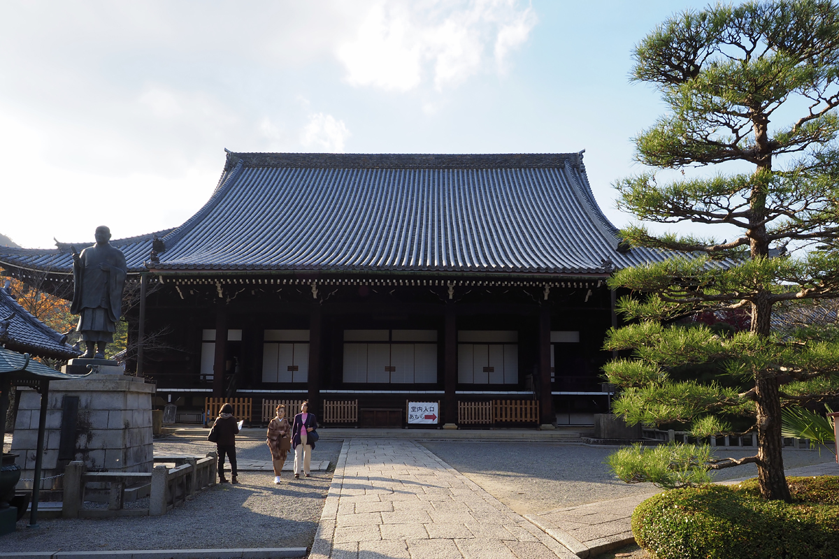 表参道を登り切ったところにひときわ大きな御影堂があり、左手には法然上人像があります。(法然上人のお骨を納めた御本廟は御影堂の裏にあるそうですが非公開)