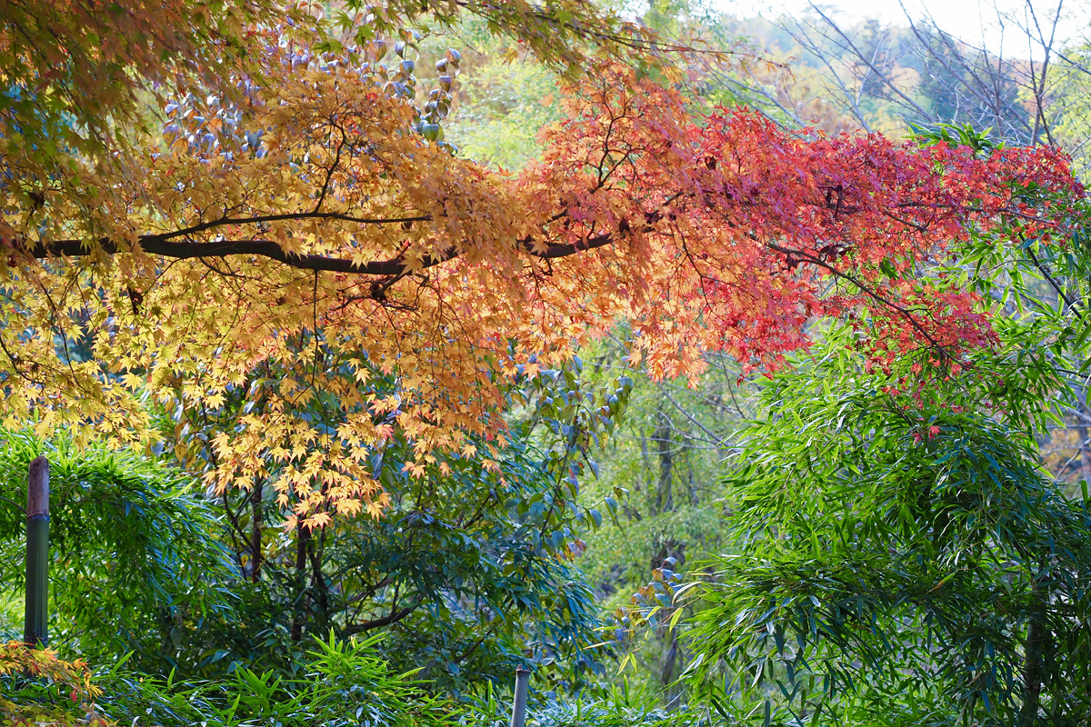 特に釈迦堂の裏にあるトイレ近くからの紅葉は竹の青と合わさって、なかなか鮮やかでした。紅葉のピーク時期は過ぎていたとはいえ、十分目の保養になりました。