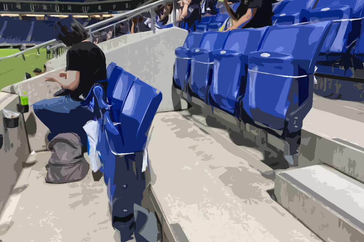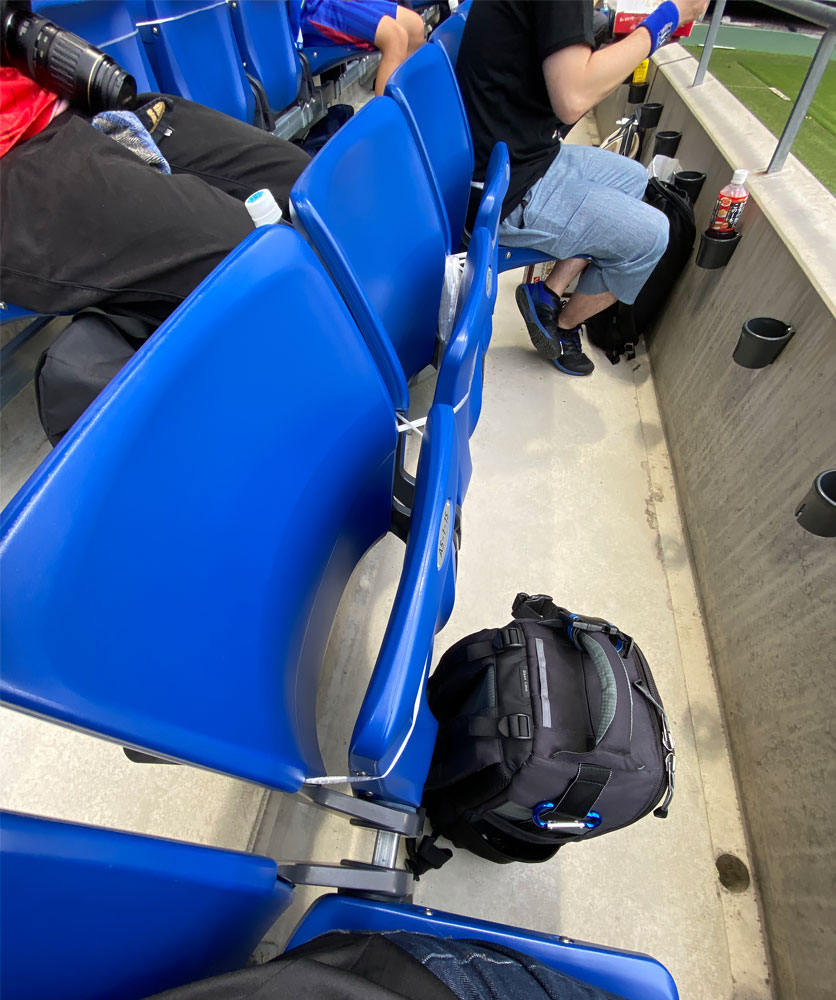 実際の座席を見てもらうと、パナスタでは↑このような形で座れない席は使われないように紐で縛ってありました。4万人収容のスタジアムですから、これだけでもスタッフの手間は大変なものだと思います。