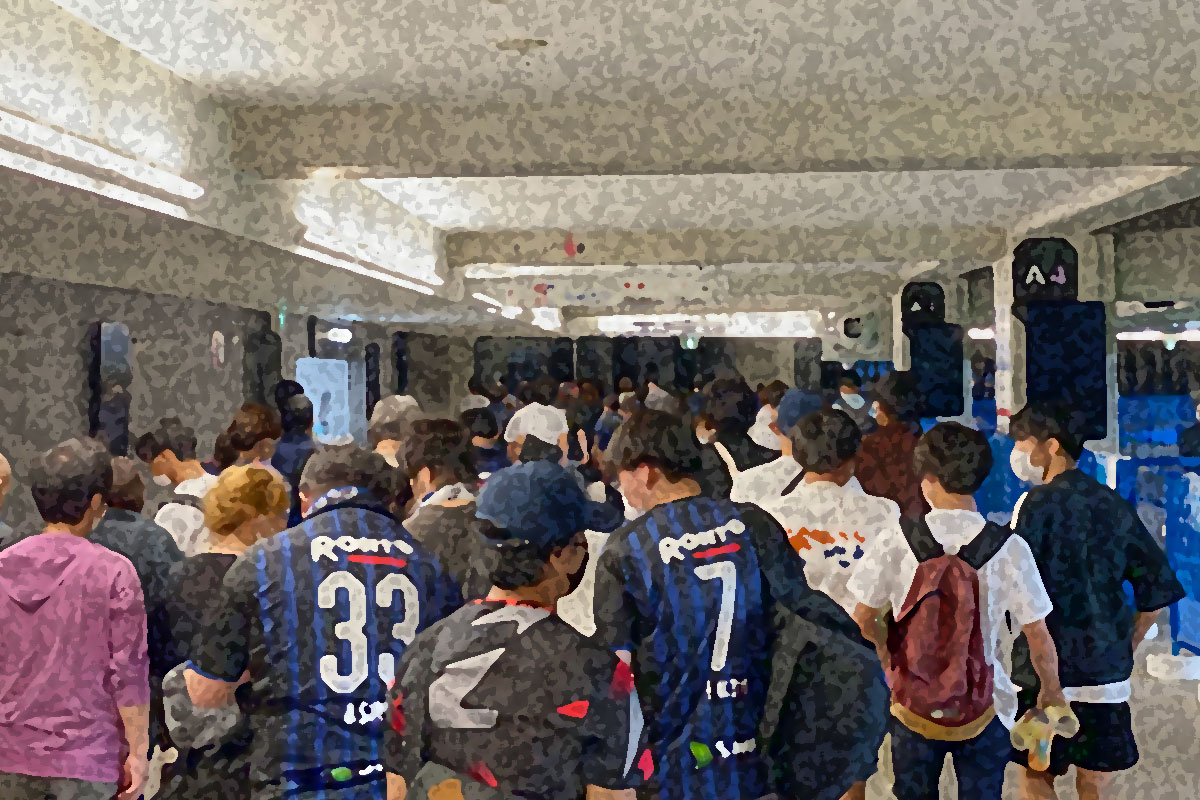 入場については、ガンバ大阪の J1 の試合の場合、予め観戦エリア別に入場時間が指定されていますし、元々スタジアムに来る時間は皆ある程度まちまちでしょう。