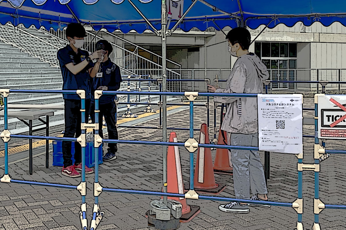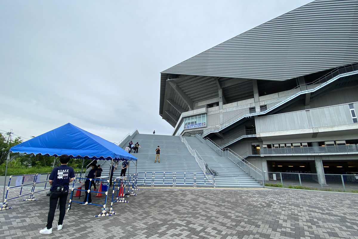 (パナスタの入場ゲート階段下に体温チェックエリアあり)