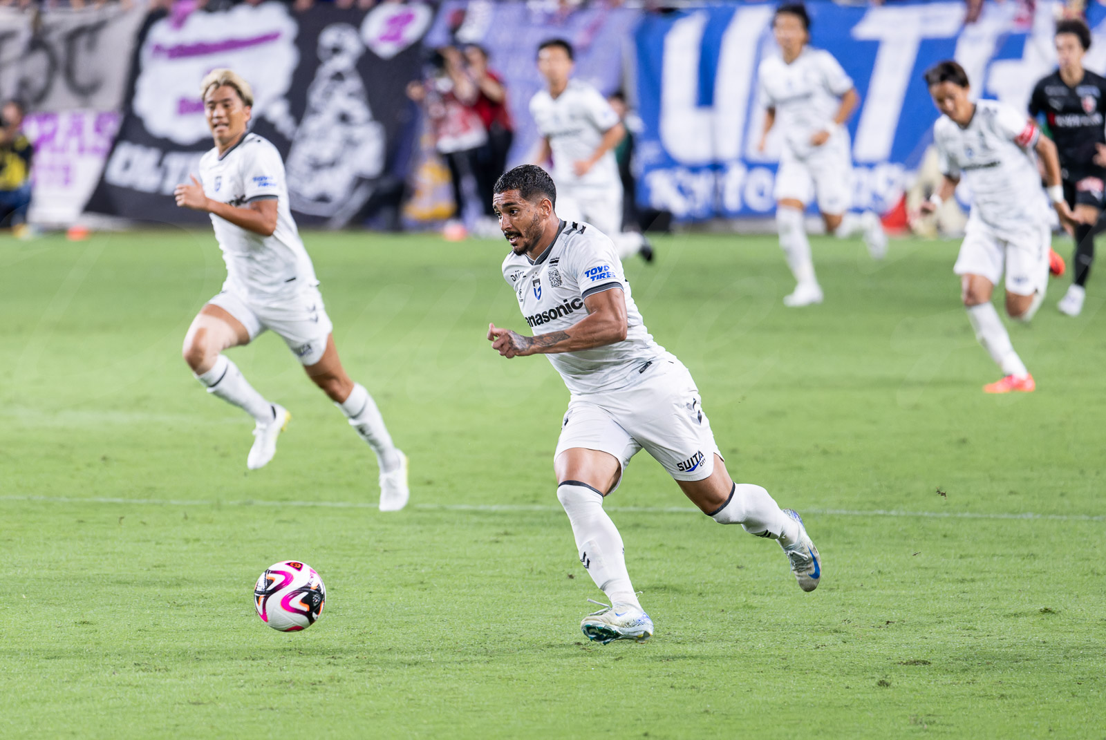 自陣で奪ったボールを受けたウェルトン選手が、左サイドを少し切れ込みながら爆走する。