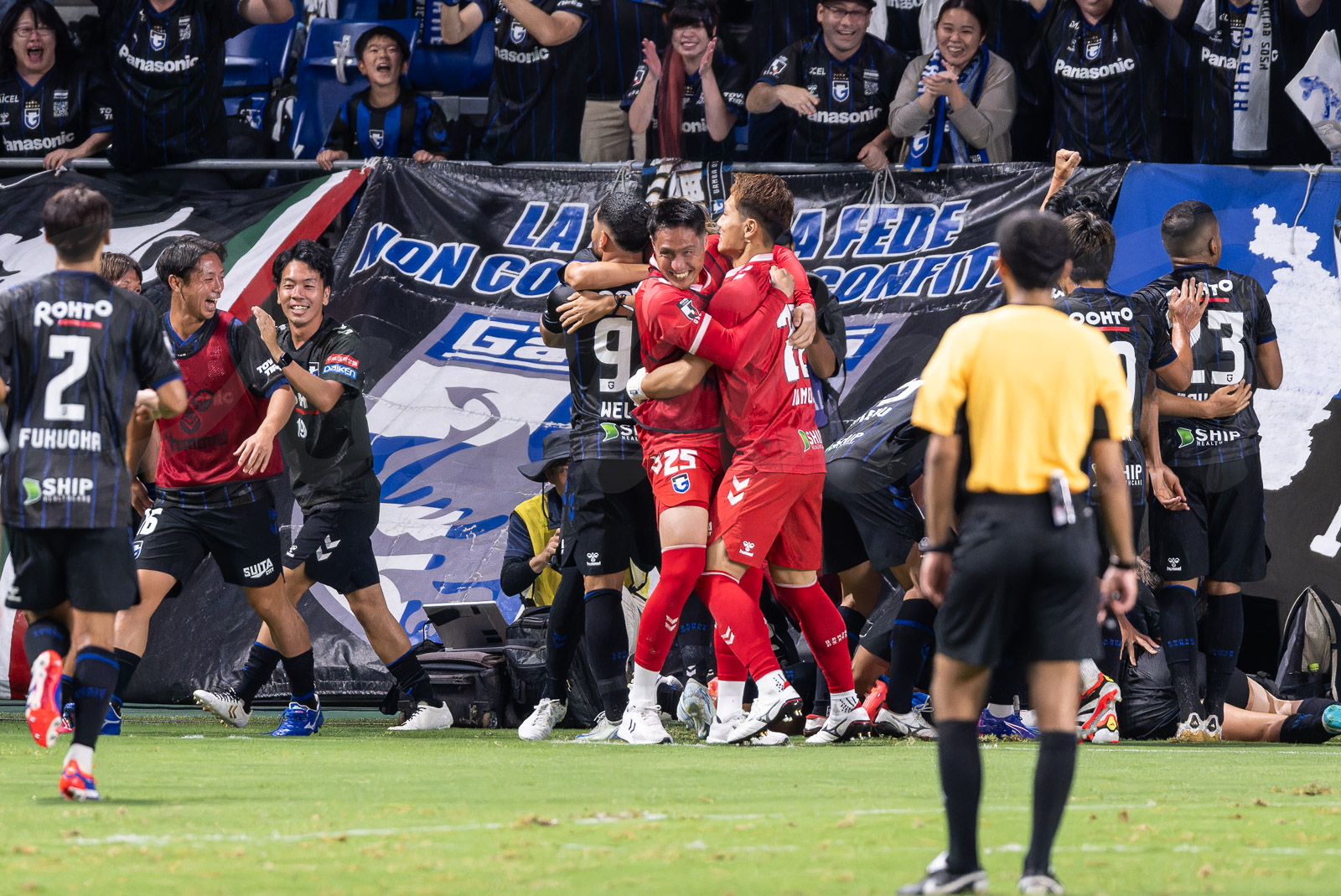 ちょうど大逆転ゴールを決めた宇佐美選手に皆が乗っかってる一番撮りたいところにかぶってる。