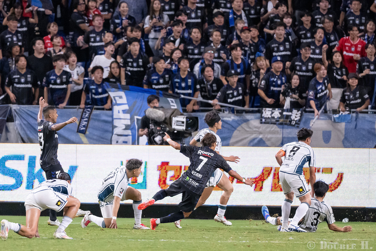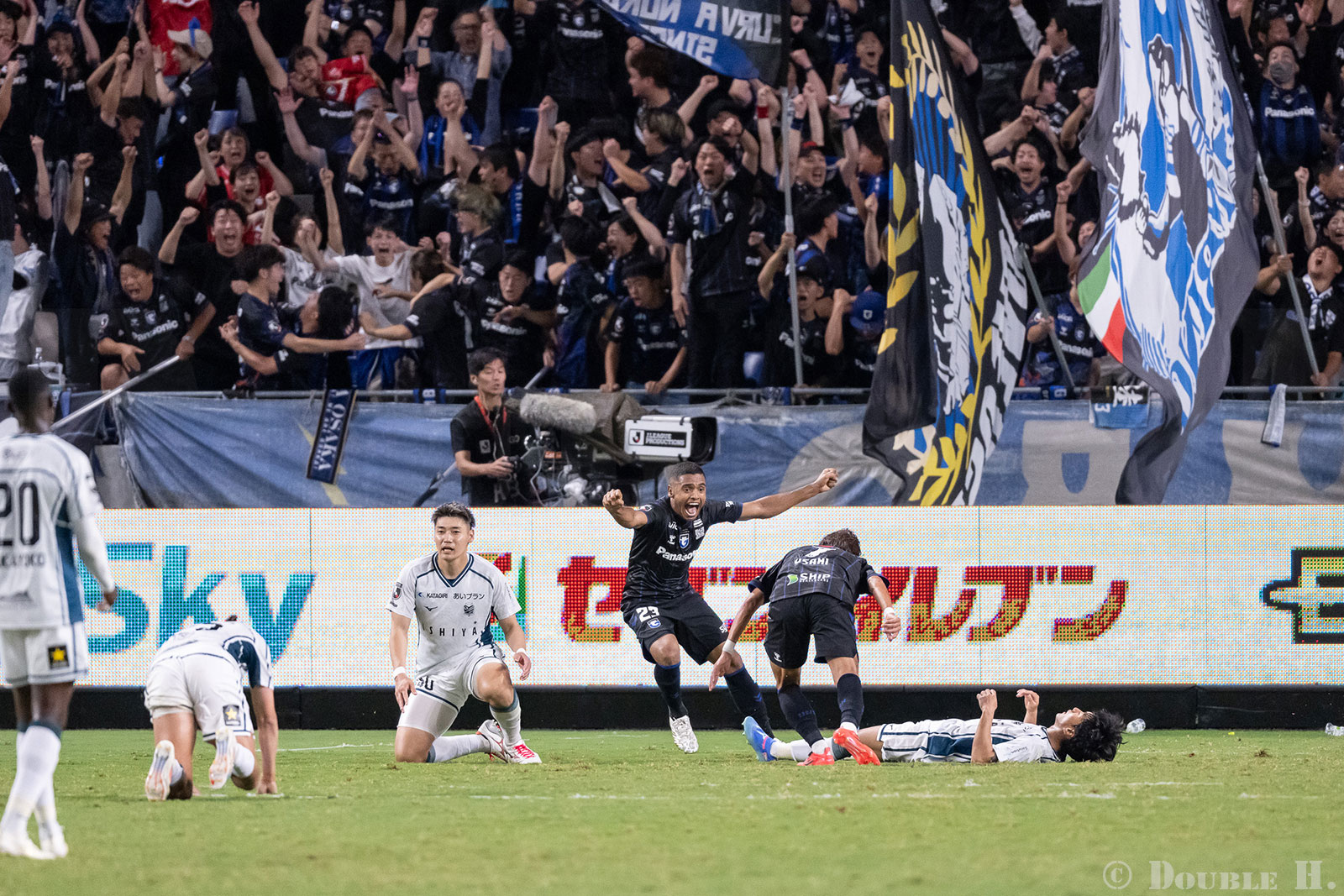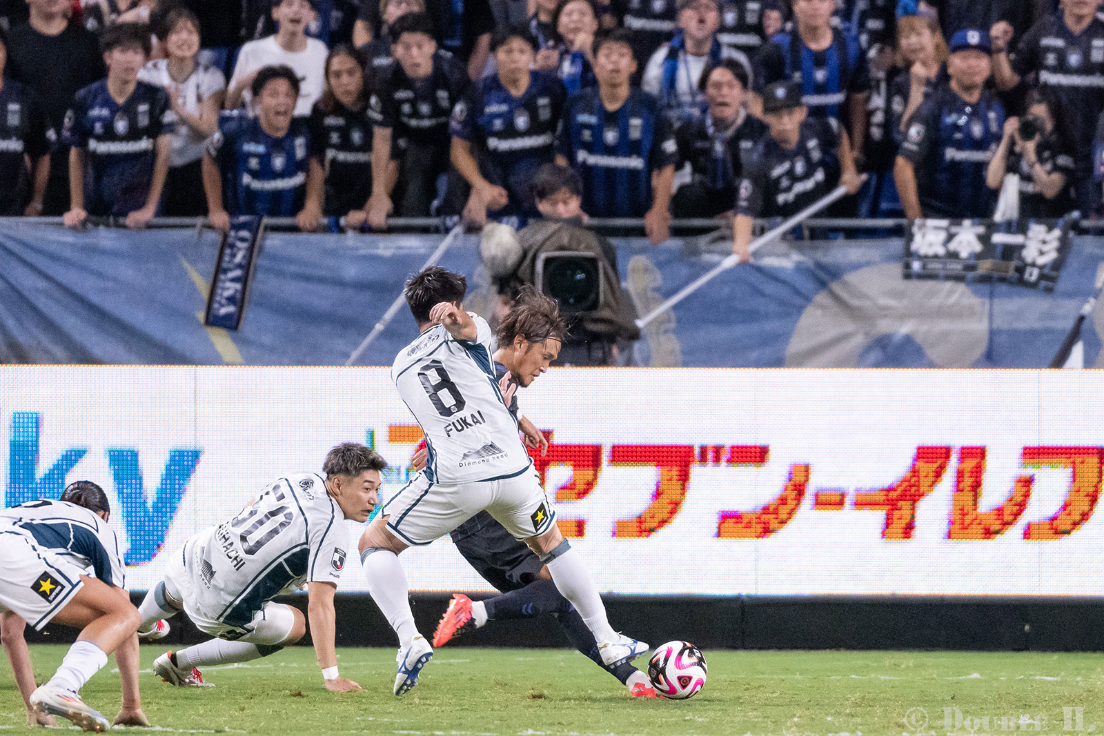 背景のガンバ大阪サポーターの歓喜も合わせ込んだ写真として自分でも納得しているけれど、
