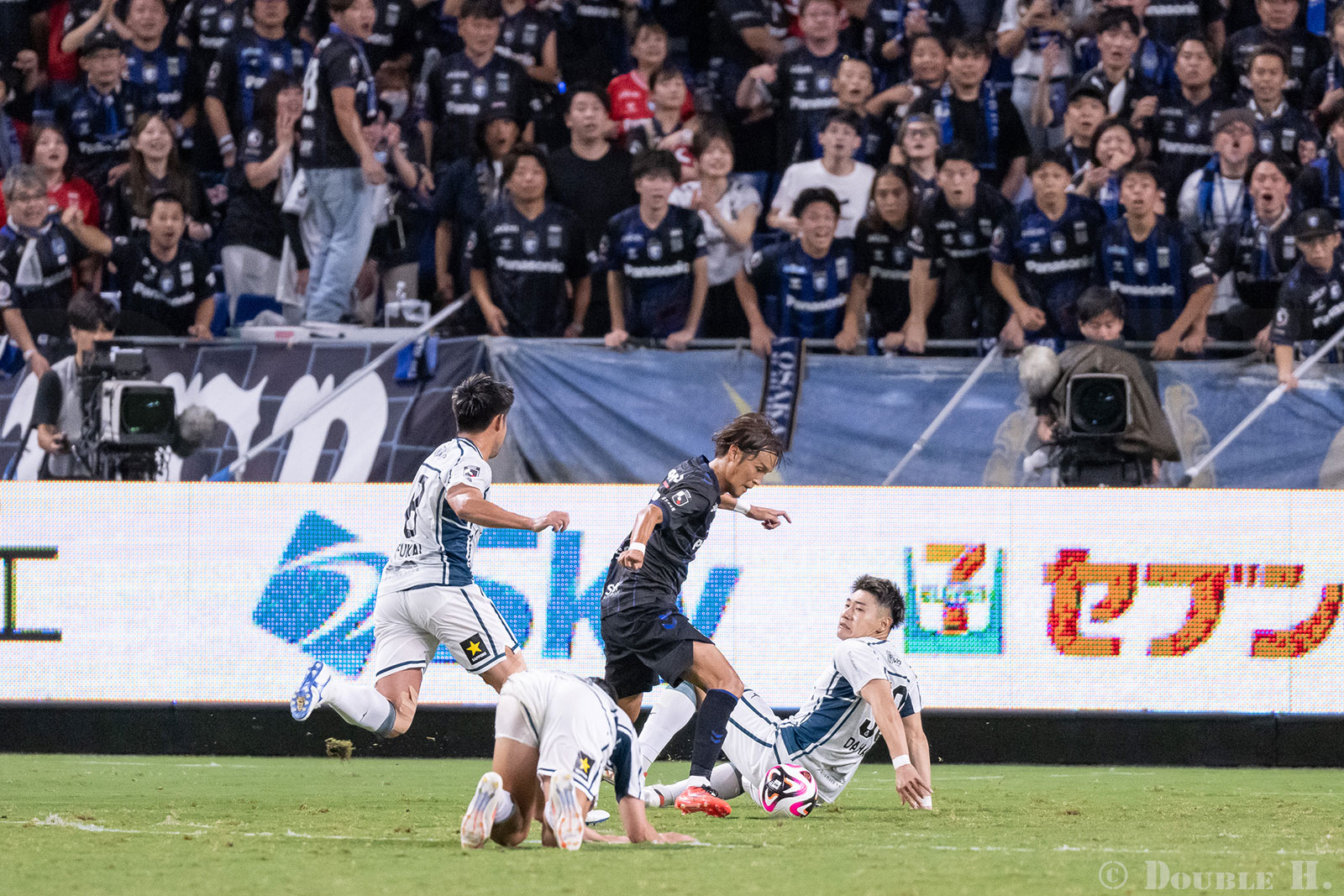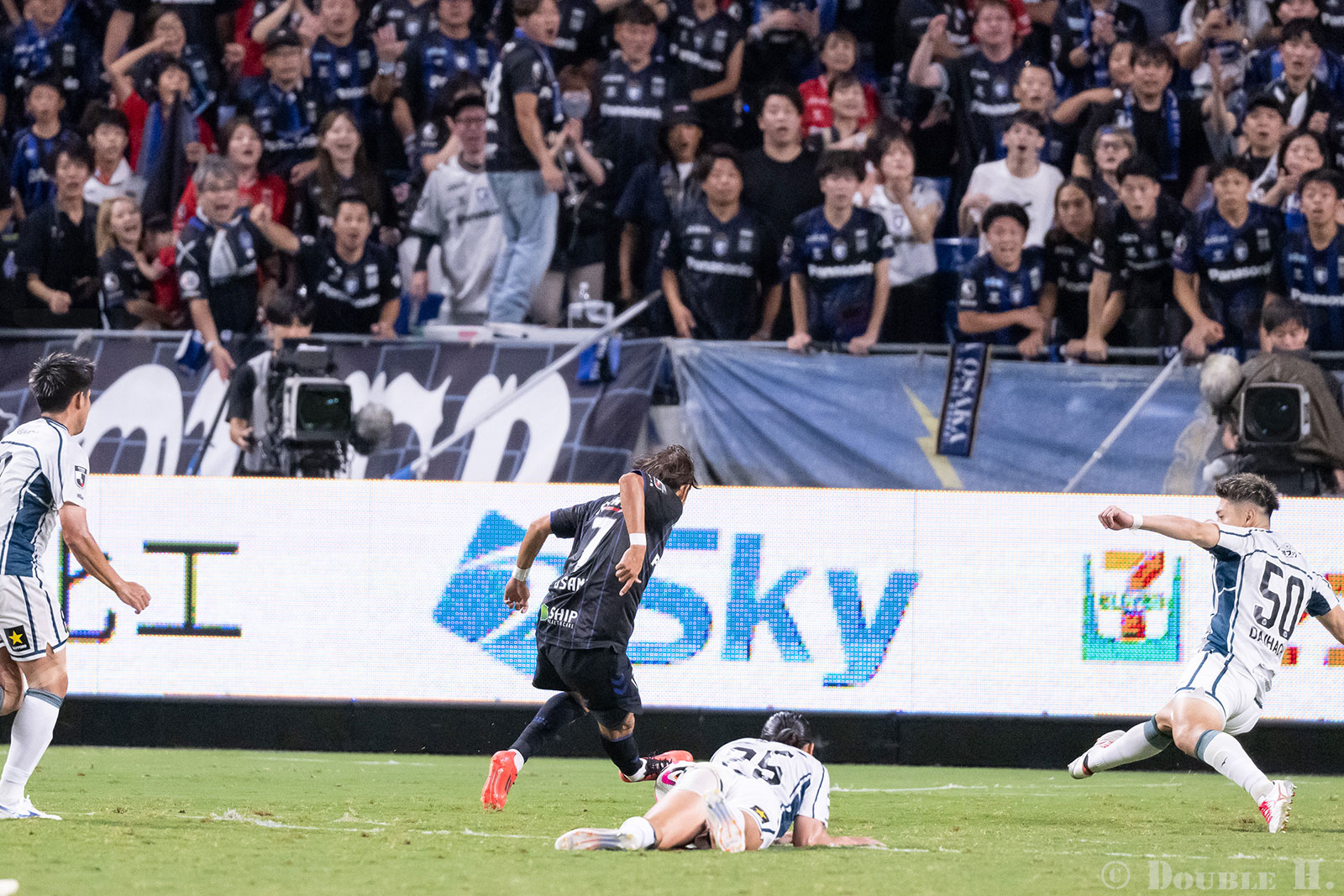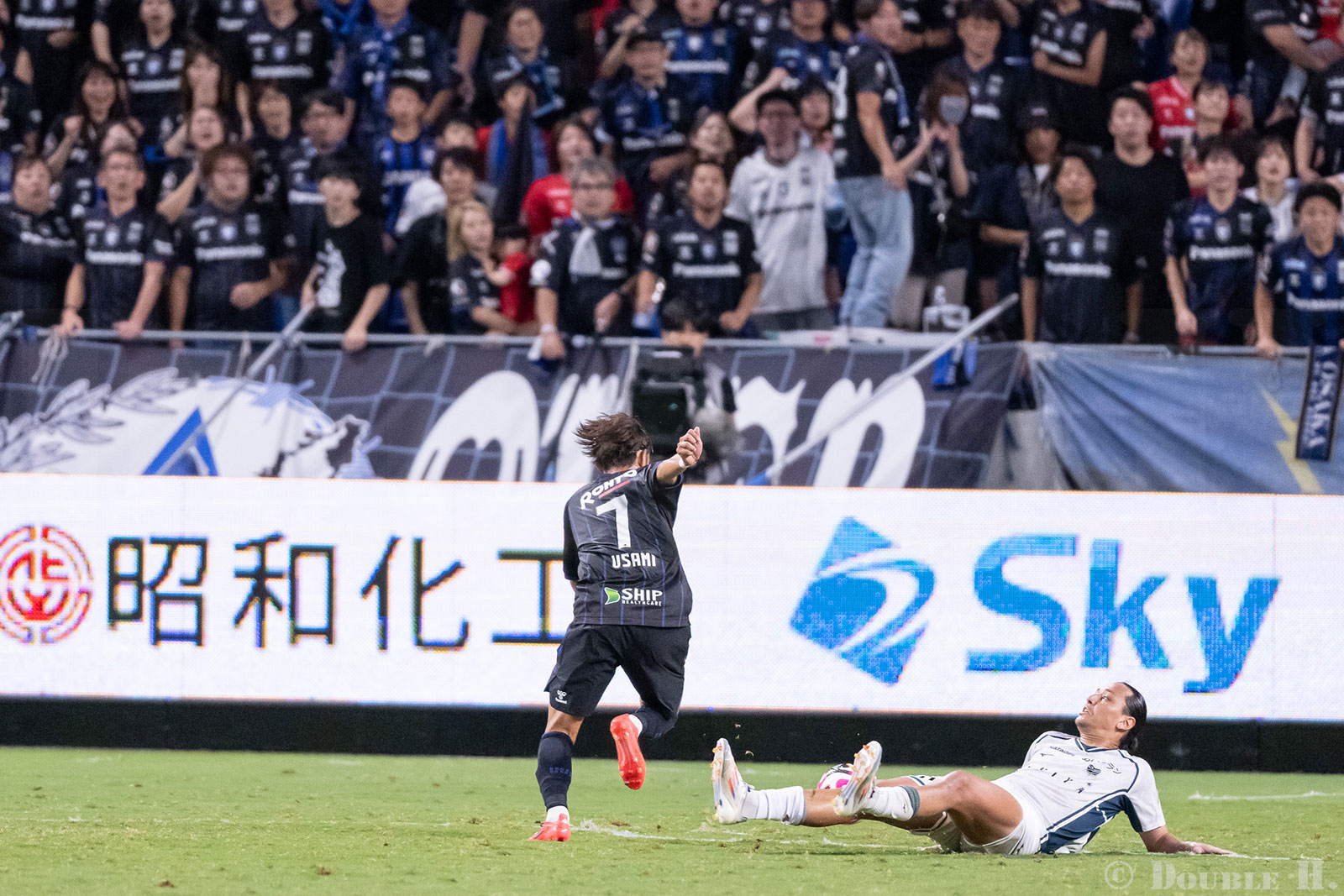背景のガンバ大阪サポーターの歓喜も合わせ込んだ写真として自分でも納得しているけれど、