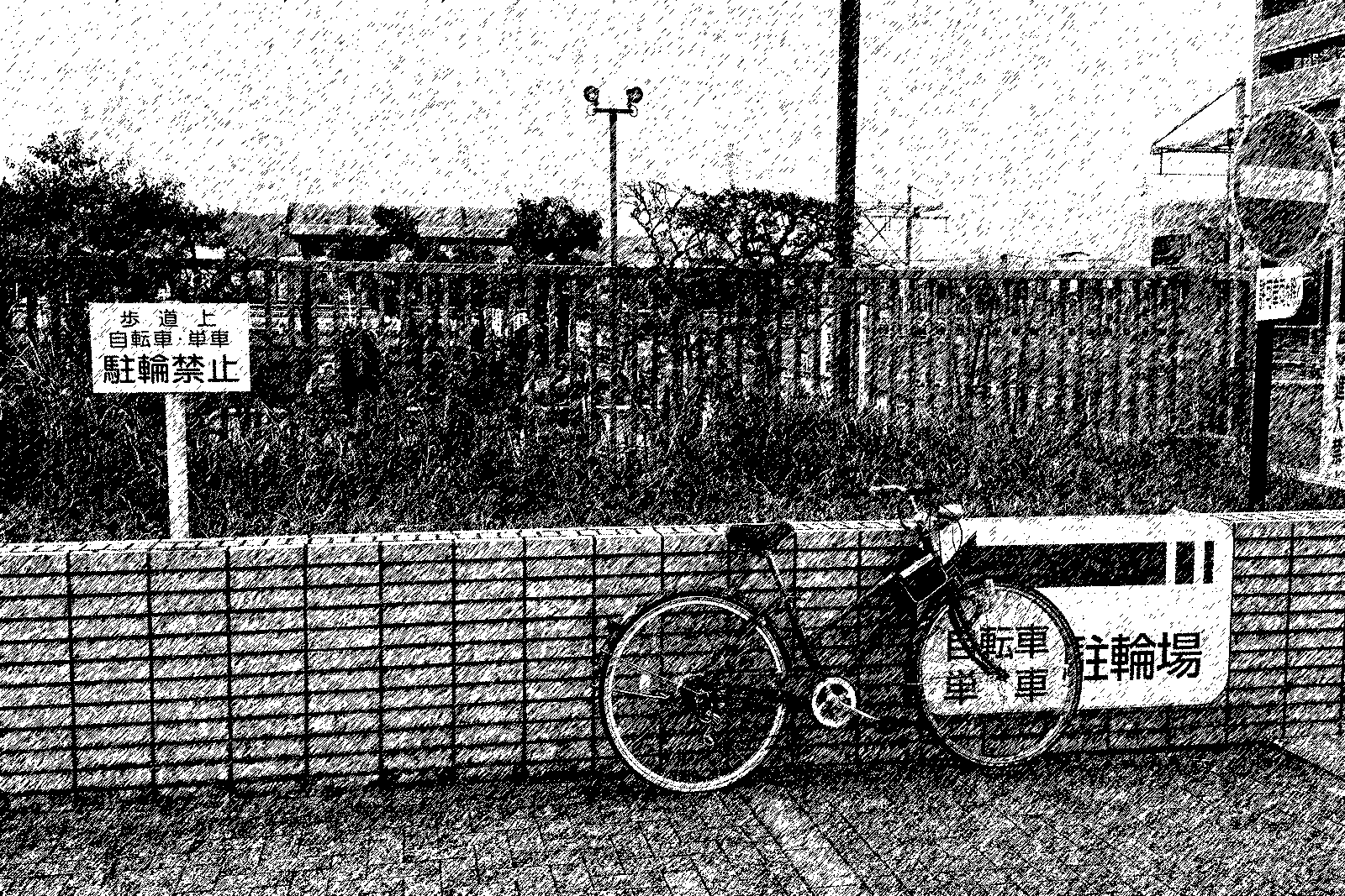 敢えて「駐輪禁止」と警察が置いた看板の前の歩道に停めるド根性。