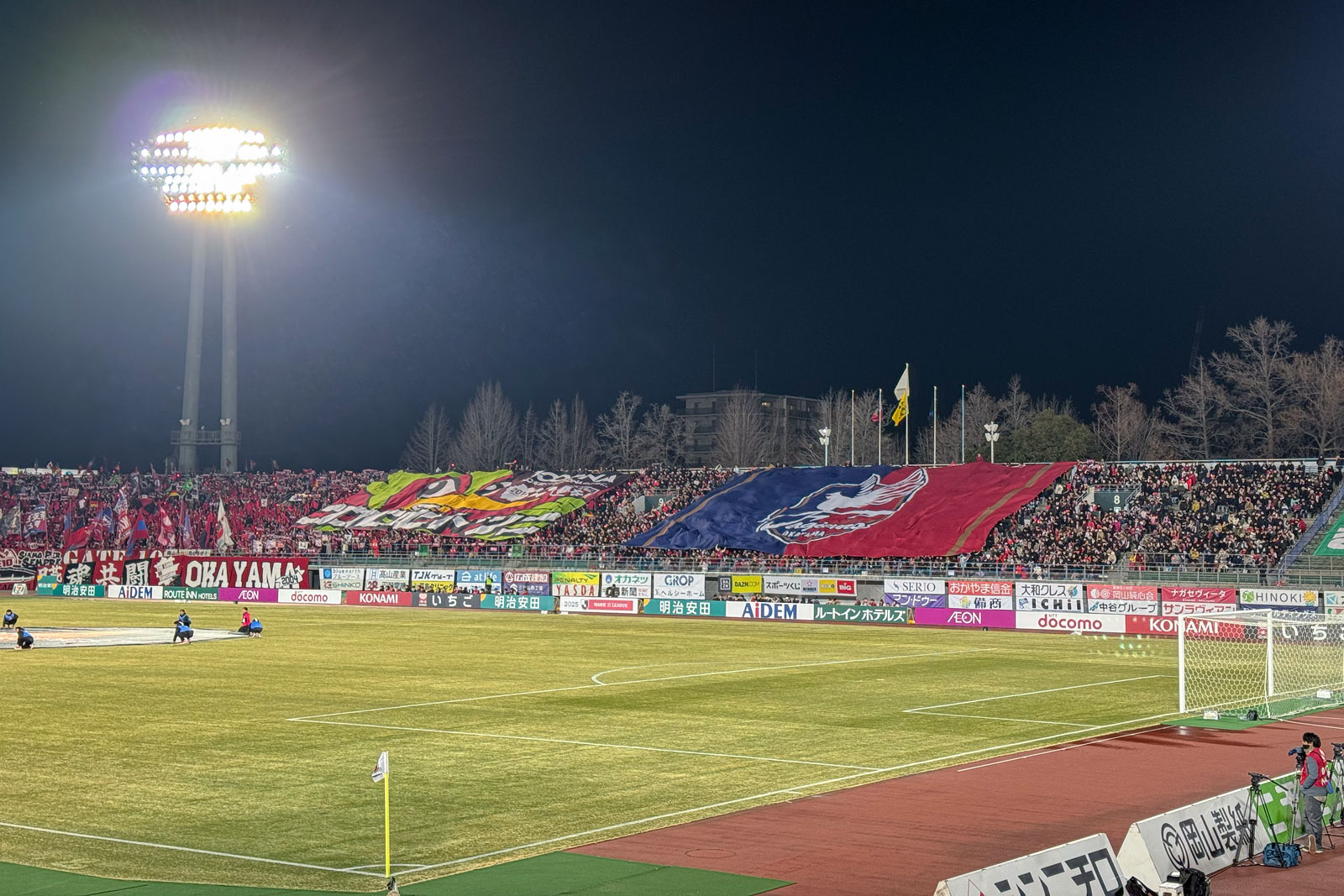 岡山サポとガンバサポが同居した、地方の J2、J3 クラブの試合にありがちな、