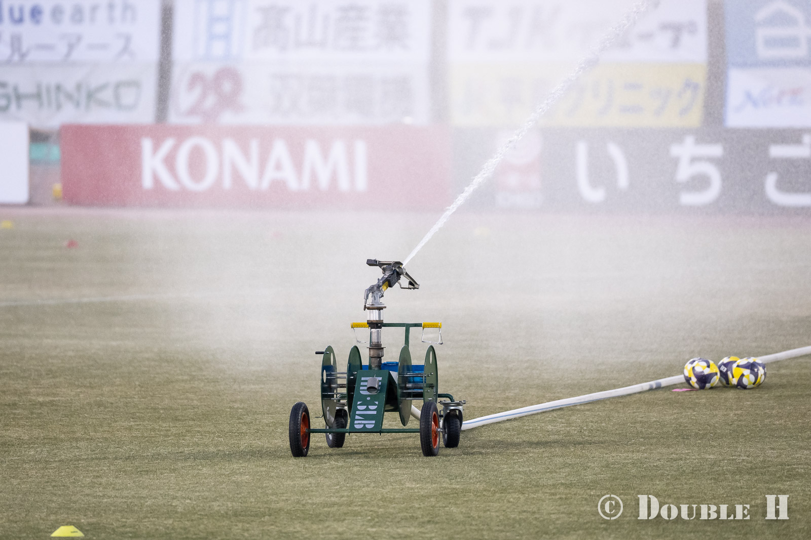 試合前の散水も散水車が出てきて水を撒く、昔ながらの光景を久しぶりに見た。