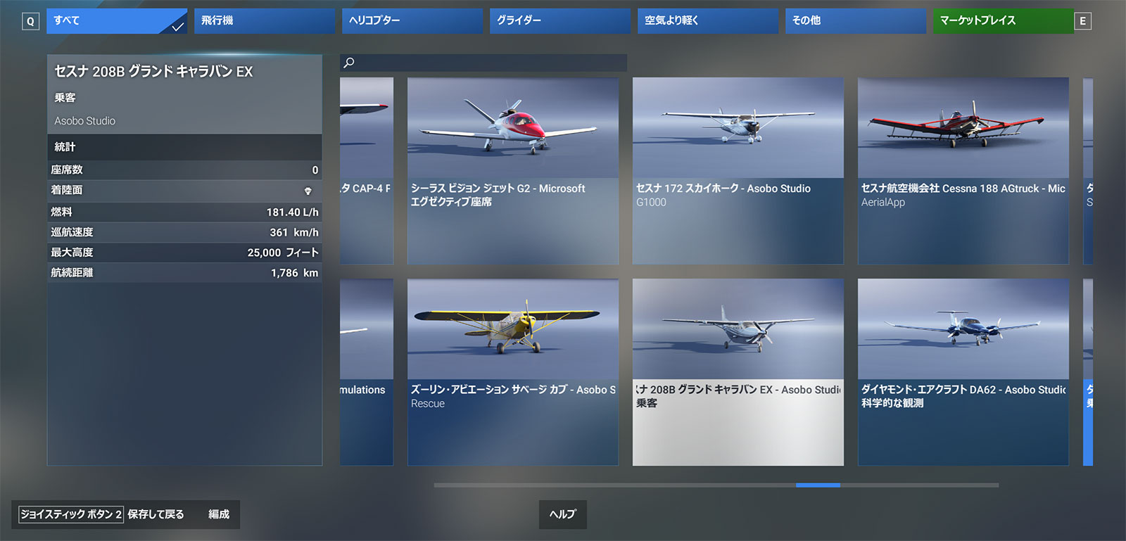 - 飛行機選択画面で一画面に表示される項目数が減ったため、Premium Deluxe Edition やサードパーティ製機体を買って機体数が多くなると横スクロール量が多くなって選ぶのに時間がかかってストレス。リスト表示やお気に入り機体のみ表示のモード実装を望みたい
