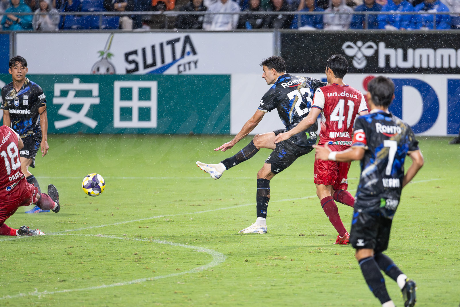 条件は同じなのに選手の動きは岡山と比べて明らかに悪く、出足で負ける近年のガンバの典型的な試合。ペナルティエリア内で守備ブロックを作られて、それを打開する工夫がない、できる選手がいない。中央を突破できる/しようとする選手がいないから、サイドへ展開するも相手の狙いどおりだから打開できないまま膠着。