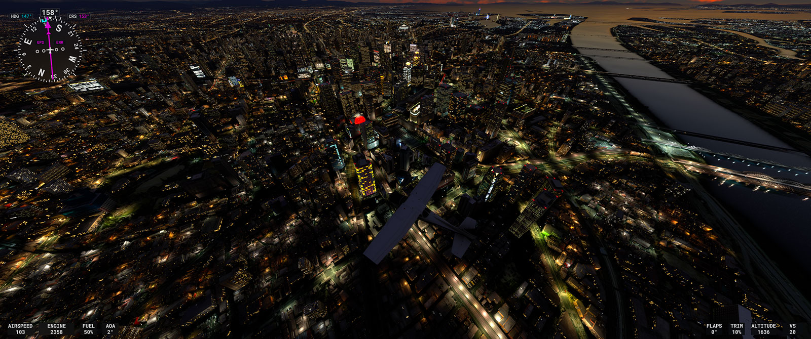 MSFS 2024 では道路照明などがやけに夜景が明るくなった分、SamScene3D のアドオンで描かれたビルの夜の暗さが気になっていて、それでまだ買っていません。Shige 氏のシーナリーも素晴らしいですしね。