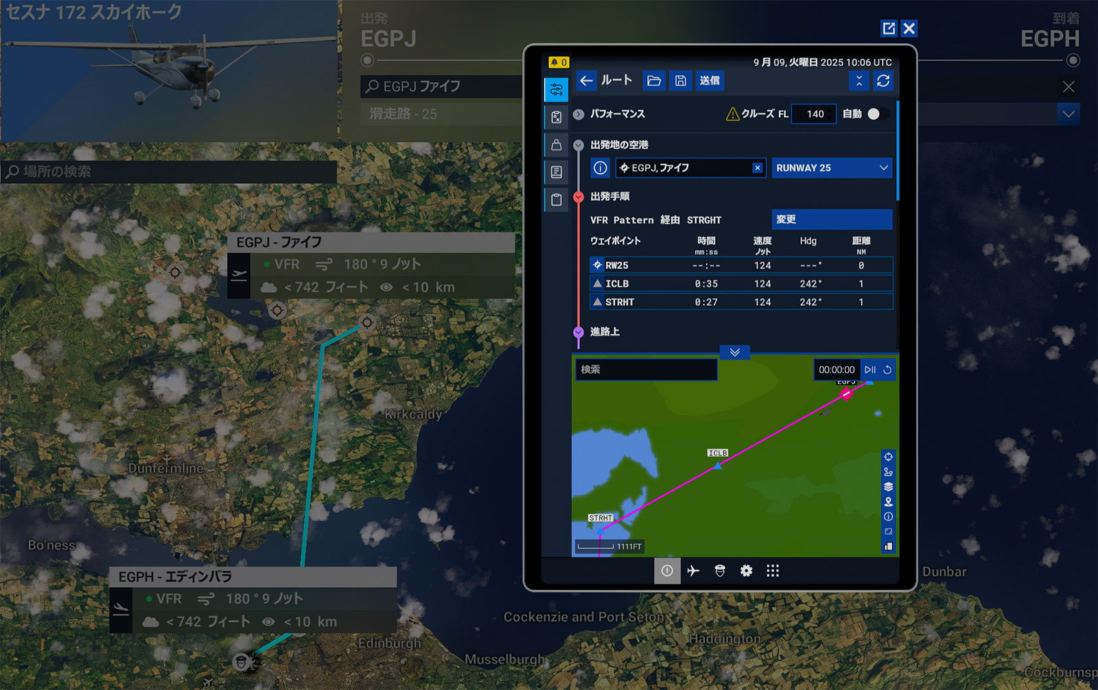 以前からフリーフライトページ(フライトプラン作成ページ)で EFB を開くと、フライトプラン作成ページ側でフライトプランを作っていても EFB の飛行機の位置がとんでもないところにあって、出発空港や経路上へ戻すのが大変でしたが、SimUpdate 4 beta では EFB を開いたら地図は作成済みのフライトプランの出発地または経路上を表示していました。