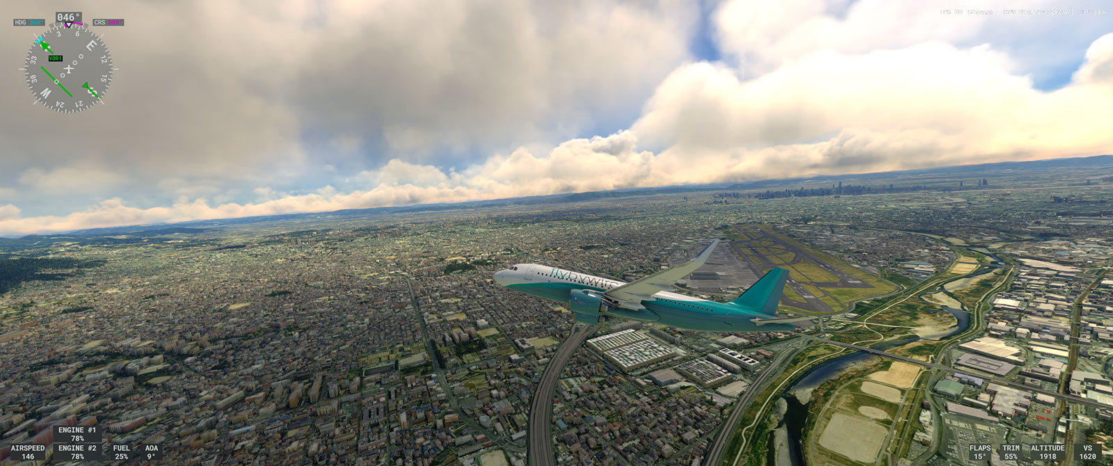 あと、MSFS 2024 にも MSFS 2020 本体にも関係ないことですが、FlyByWire の A32X (A320neo) で先日久しぶりに ITM → HND をフライトした際、うっかり伊丹空港離陸直後の左旋回をする前からオートパイロットのボタンを押してしまったら、FlyByWire A32X のオートパイロットさんはショートカットしようとして右旋回しちゃて、ビックリしました😅