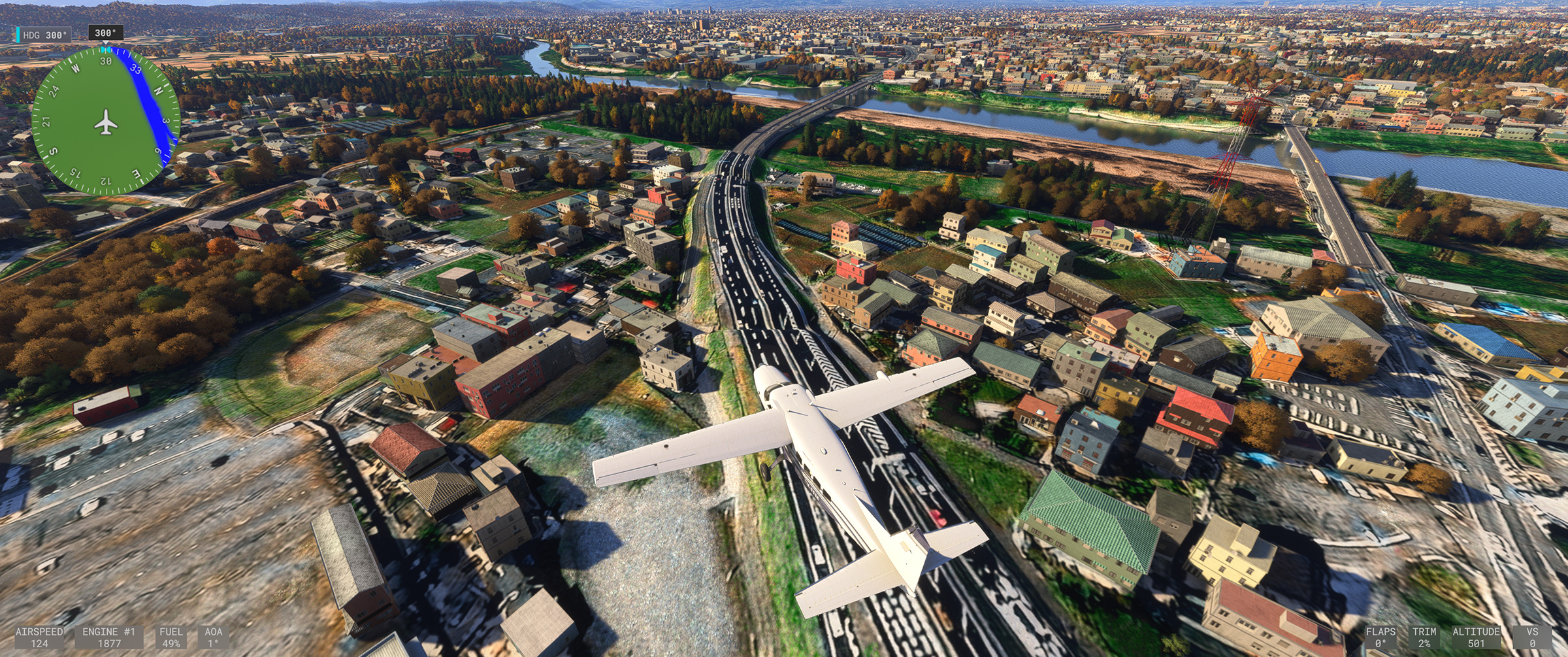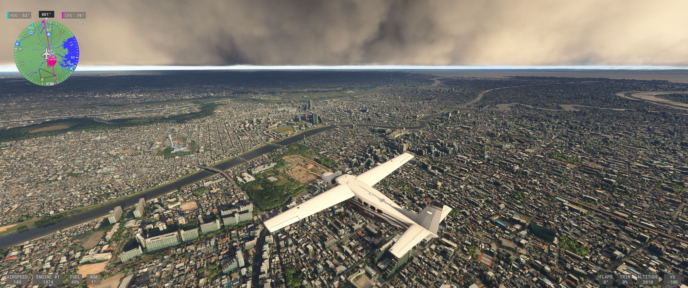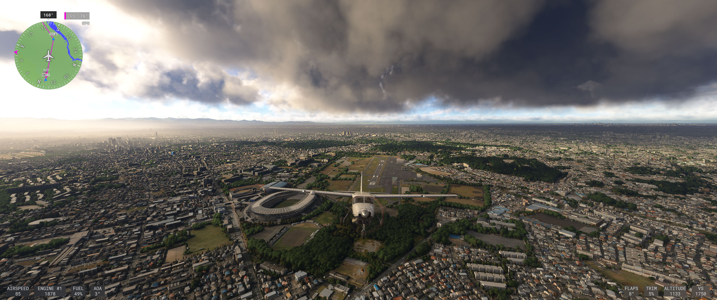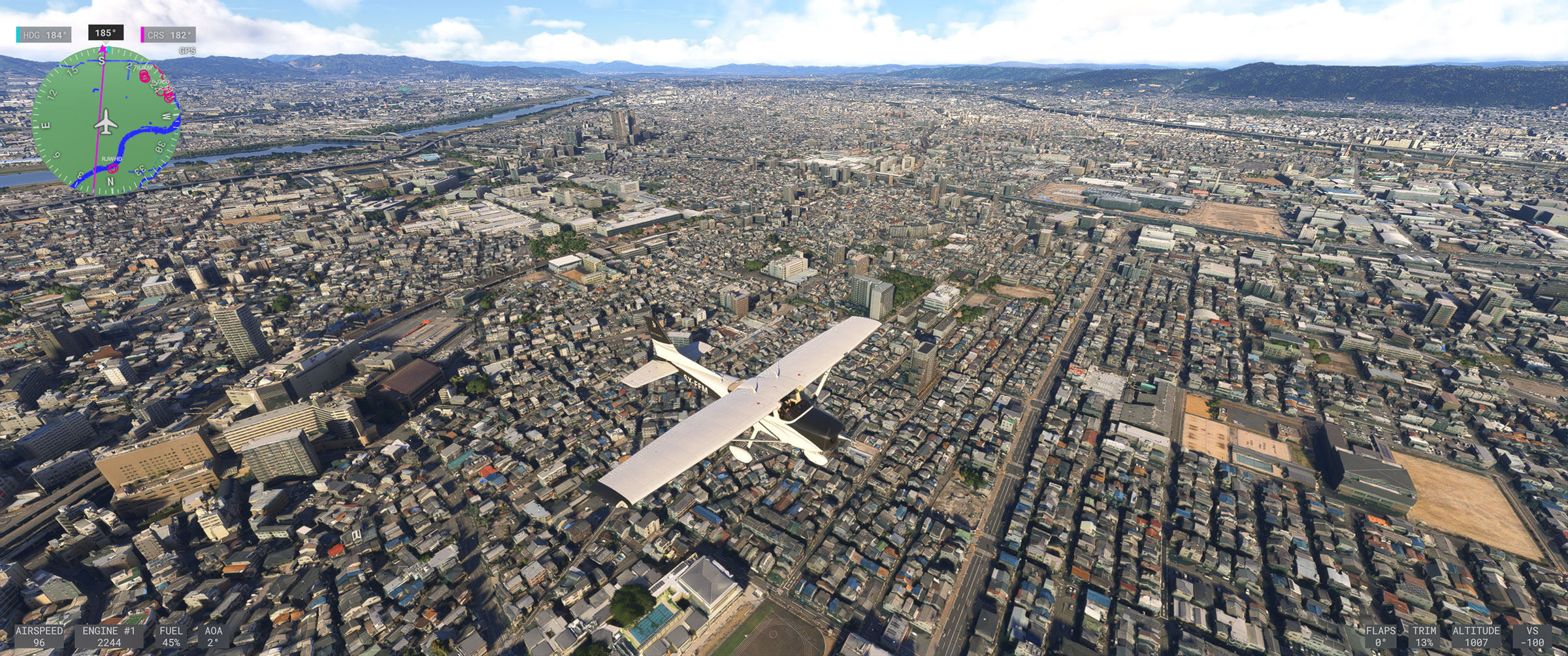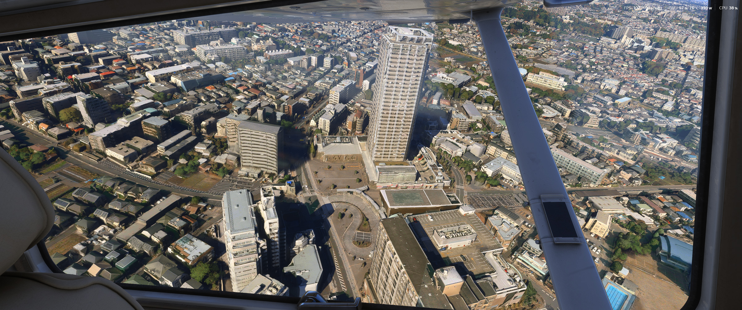 - 何度も書いているように東京広域と京阪神は都心部だけでなく周辺部までフォトグラメトリ生成エリアでリアルっぽい地上風景になりました。都市部の風景(主にビルや特徴的な建造物)を強化する有償無償のアドオンはあって有り難く使わさせていただいていましたが、