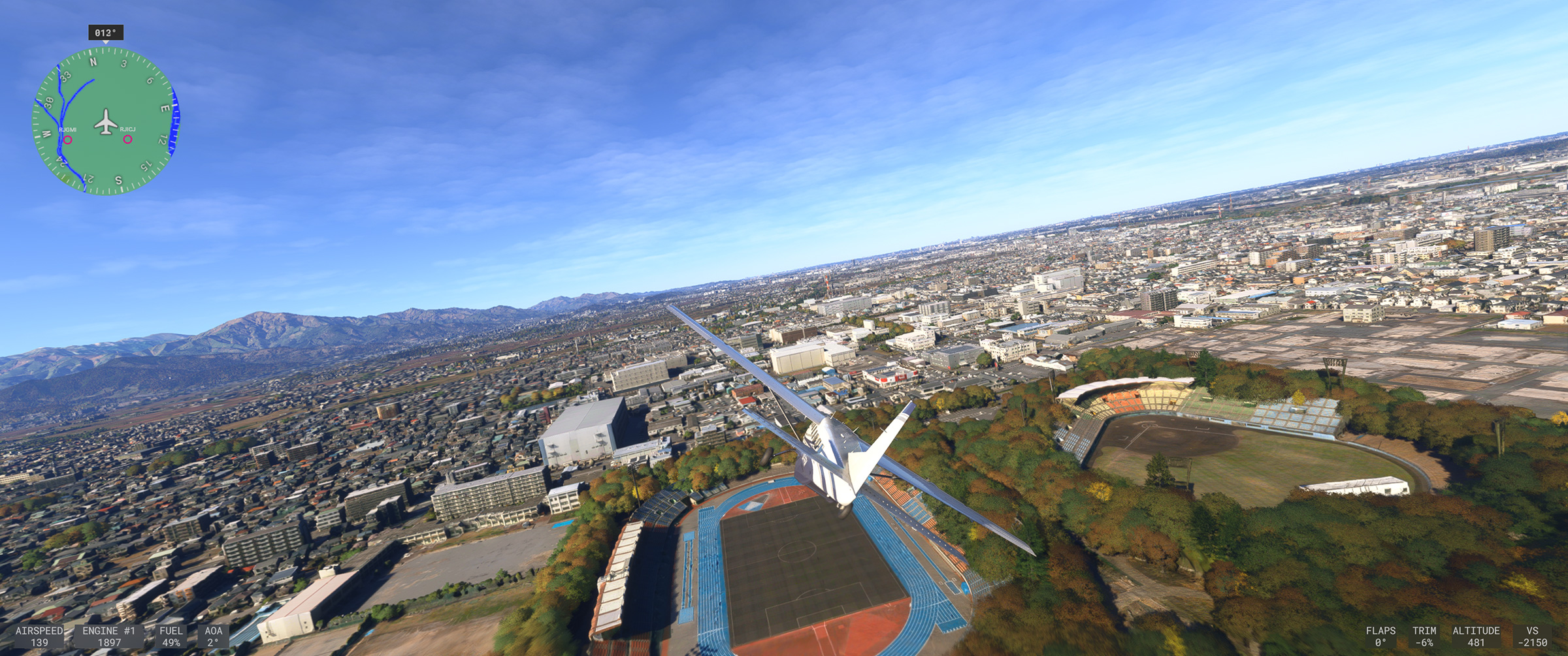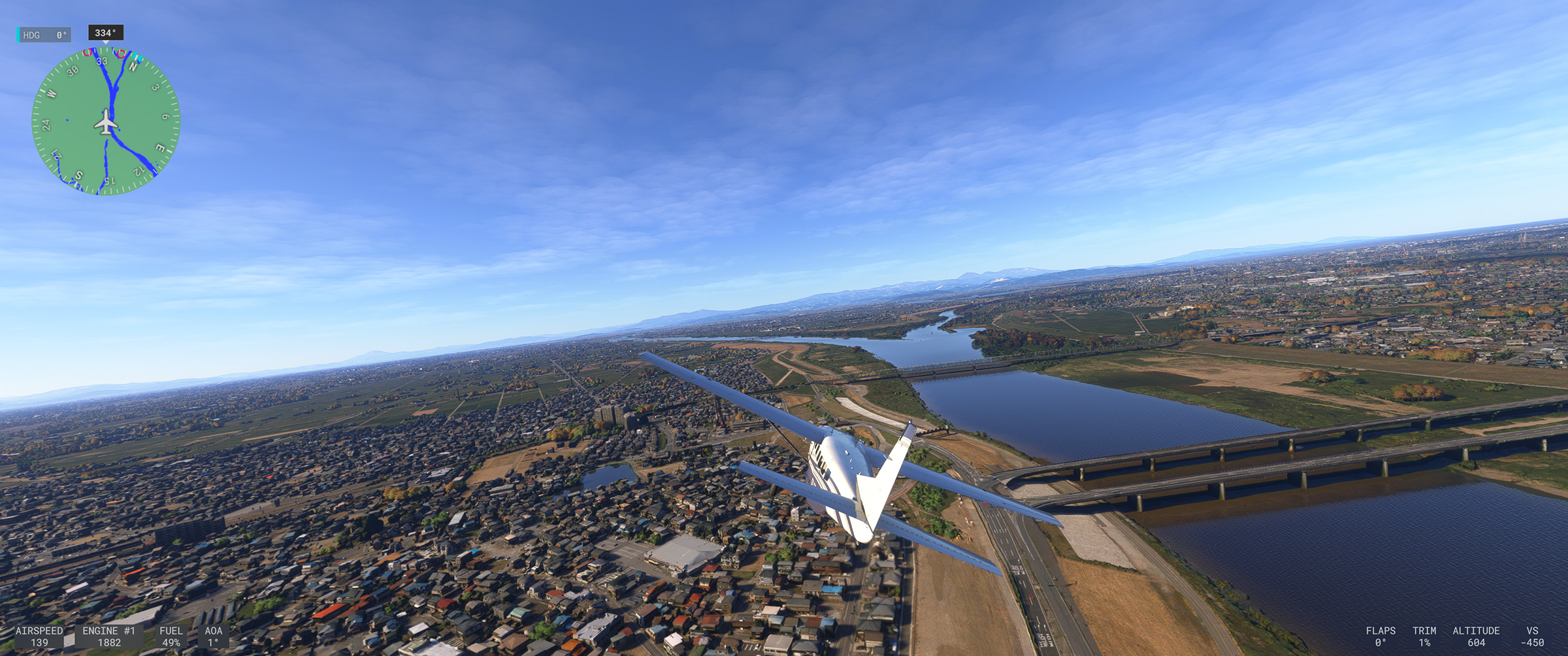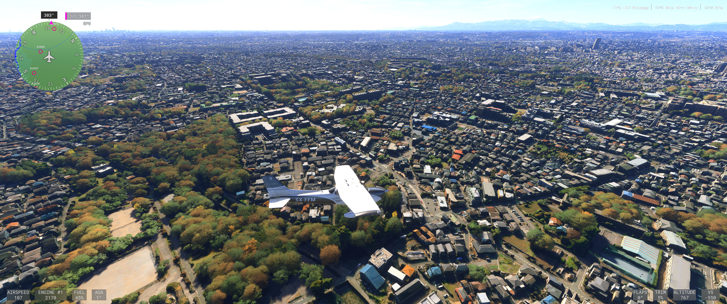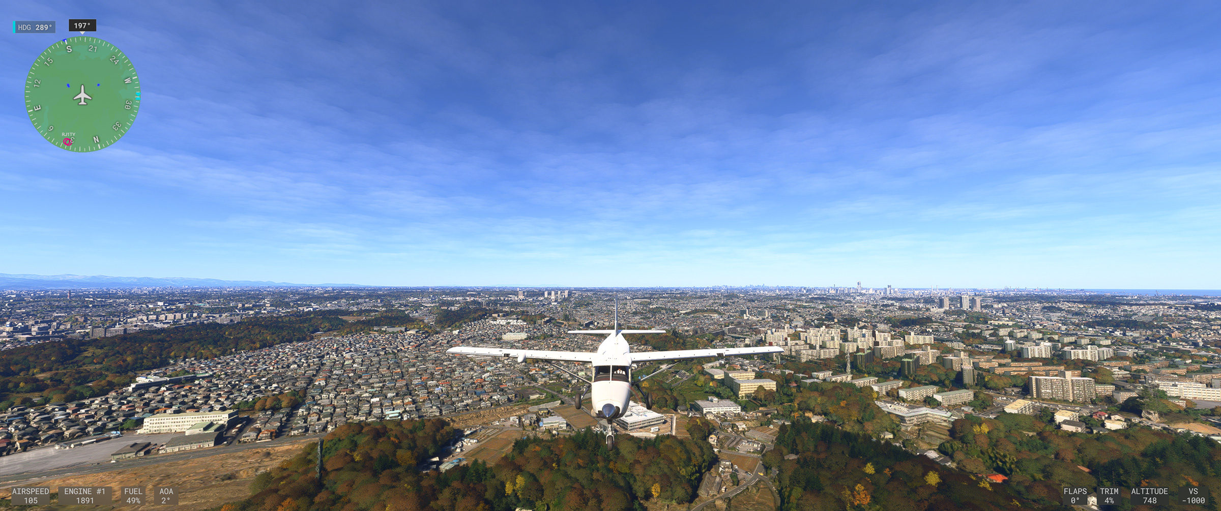 とまぁ、こんな感じでリアルになったフォトグラメトリ生成エリアで飛ぶのが本当に楽しく、最近は海外エリアで VFR 遊覧フライトをしていません(そろそろ海外遊覧もまたしなきゃ)。
