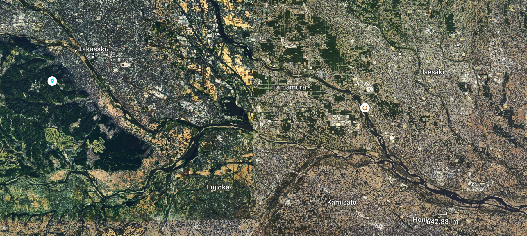 本庄、上里、藤岡に入ったあたりまでフォトグラメトリ生成エリアだったので、高崎までカバーされるのかな?と思いながら飛んでいたら、その手前でエリアが切れていて残念。基本的に、利根川より北はカバーされていないところが多いようです。