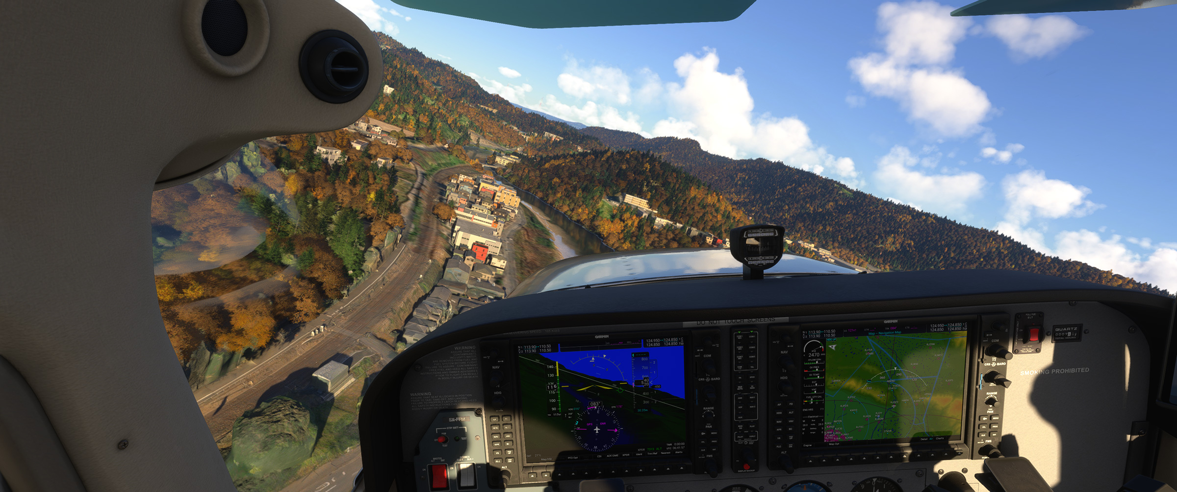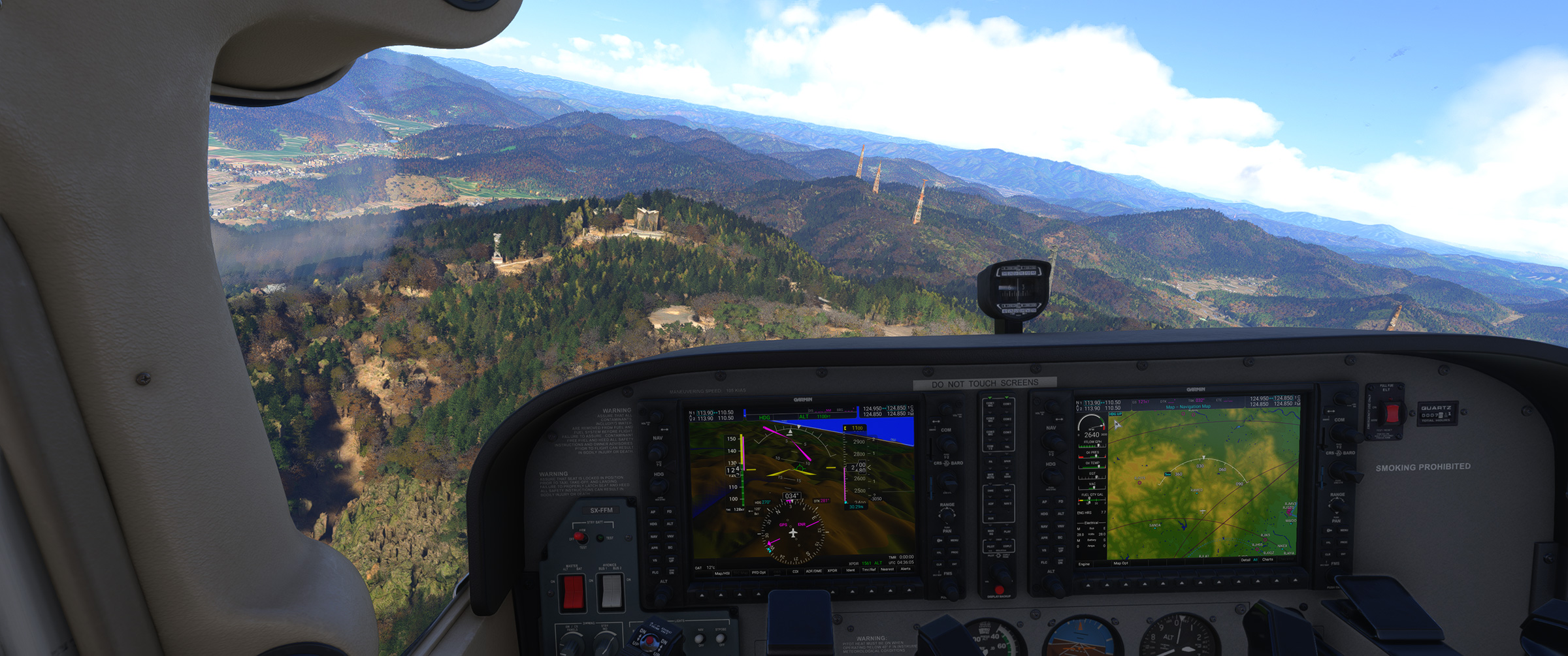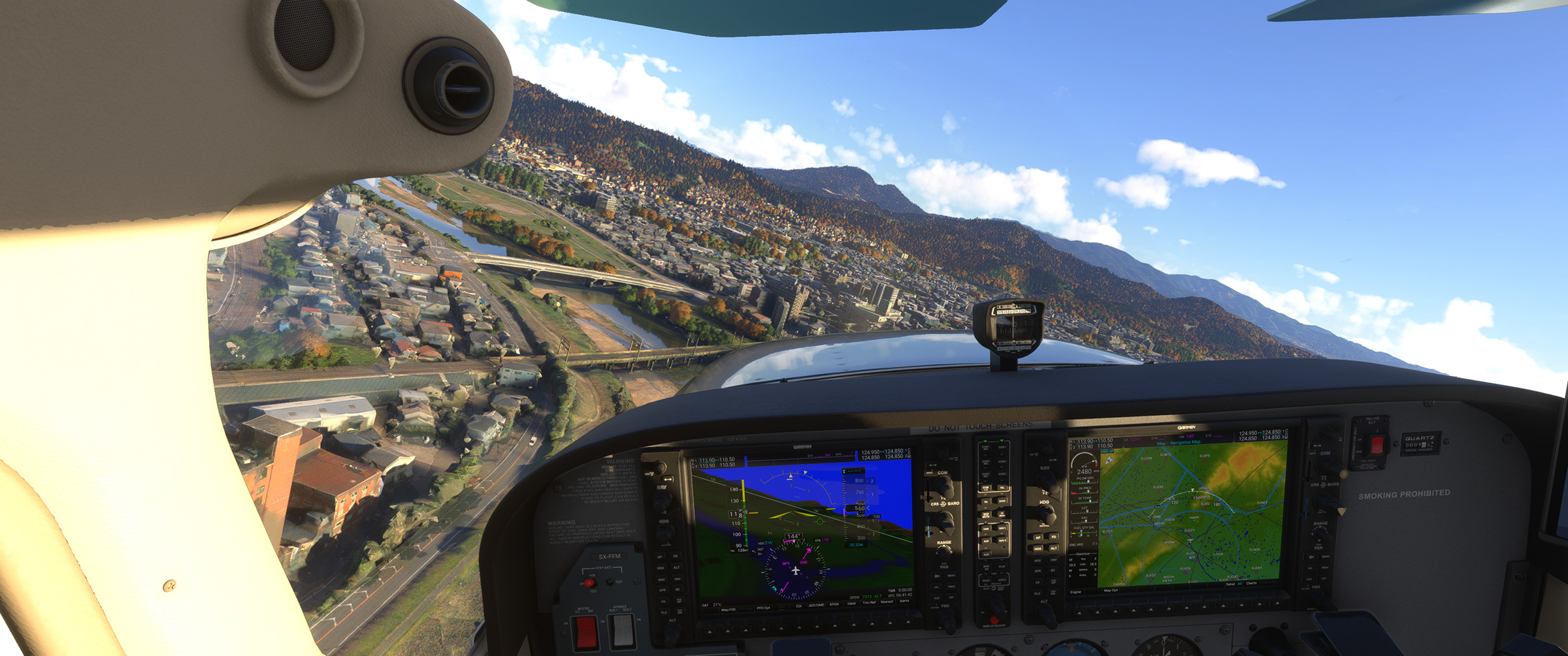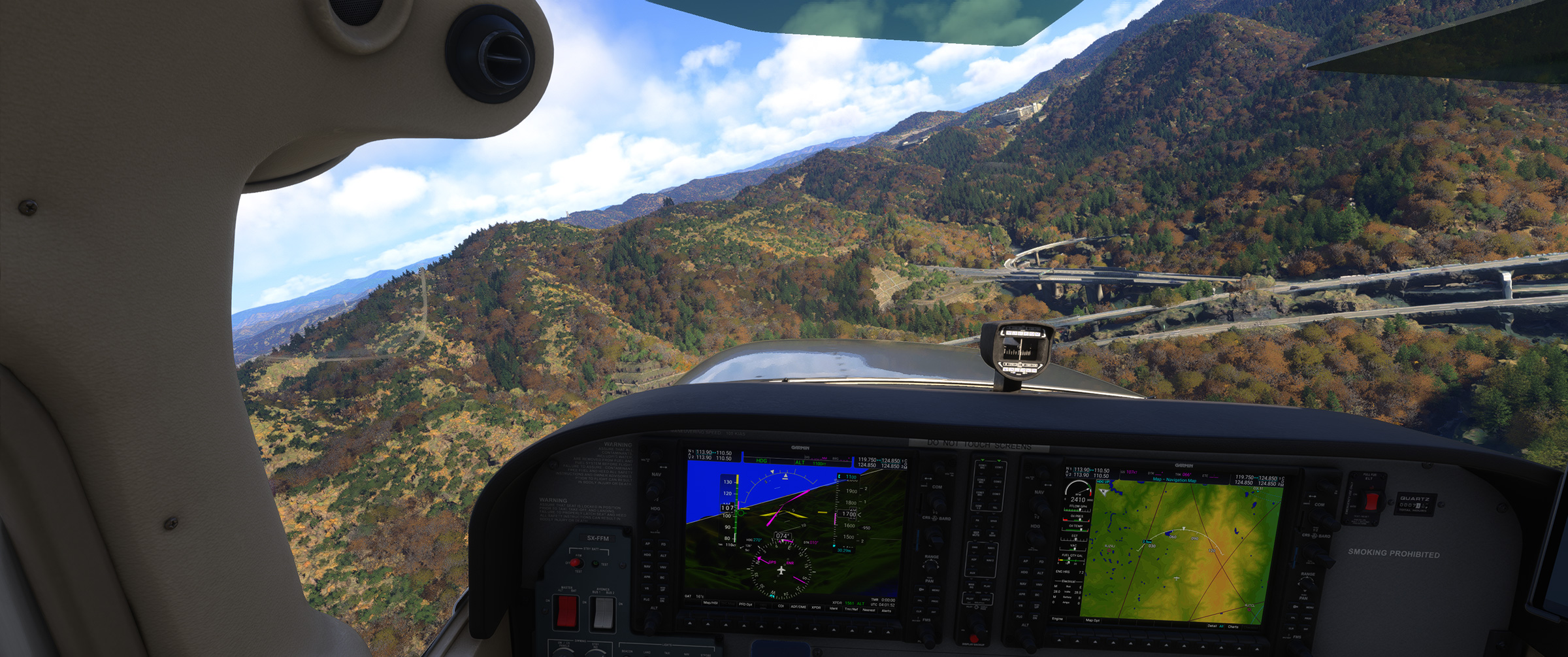 あのさあ、紀ノ川沿いの平野が続くエリアなのに、こんな樹林帯な訳ないじゃん。田んぼの中に一般家屋が点在する日本の田舎の代表的な景色が続くのに、こういうのを出されると飛んでいても萎えるんですよねぇ。と MSFS に向かって独り言を発してしまうパターン。