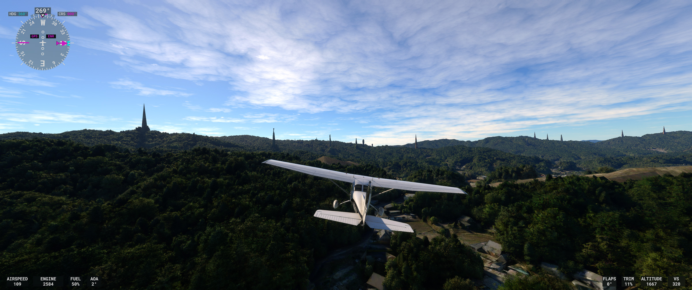 フライトシムマニアの評価軸は「機体の動きや機能、操作などがどこまで本物に近いか」に傾いて語られがちですが、雰囲気組の私にはむしろこういう風景描写のリアルさ向上の方が嬉しいですね(元々 MSFS 2020 リリース時に知ってハマるきっかけになったのは地上風景描写の綺麗さでしたから)。