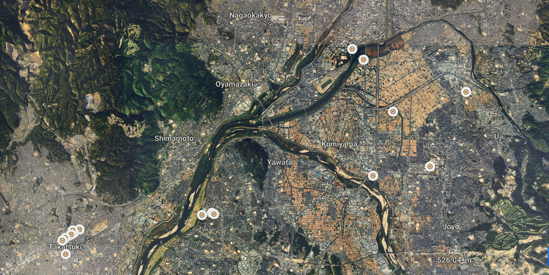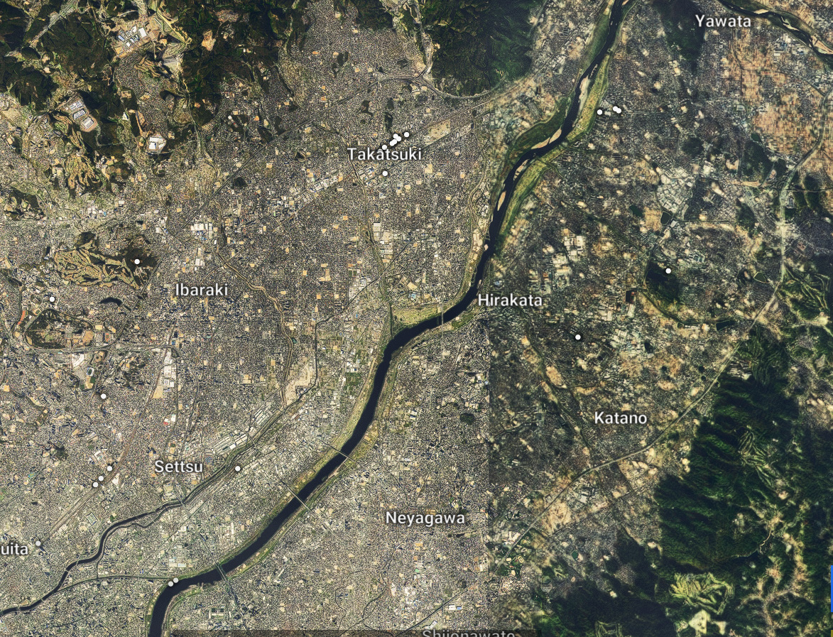 - 高槻市のイオン高槻付近より京都側および島本町