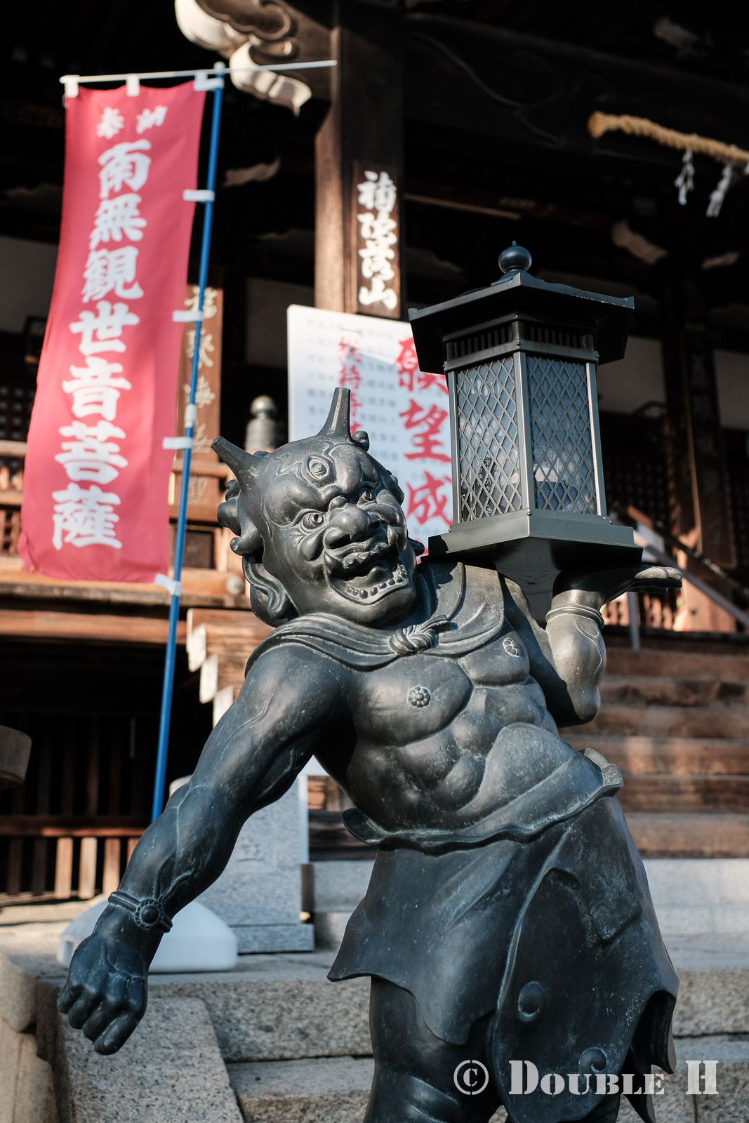 灯籠担ぐ鬼たち January 14, 2026 どっこらしょ、という感じで灯籠を担ぐ鬼。年末に竹灯籠のイベントが行われる総持寺の本殿両側には、灯籠を担ぐ鬼がいる。 もう片方はというと…… こちらは、ウリャー!という声が聞こえそうな感じで担いでいる。 (今となっては)住宅街の中にある小ぢんまりとした、そして近代的なお寺だが、西国三十三札所二十二番のお寺でもあり、超駅近のお寺でもある。 昨年末も久しぶりに竹灯籠まつりに行きたいな、と思いつつも慌ただしい中で行けずだったので、今年末こそ行きたいものだ。 西国三十三か所めぐり (Amazon) 「チラシの裏な日々」カテゴリの最新記事 タグ :#大阪府#茨木市#総持寺#寺社仏閣#灯籠 < 前の記事次の記事 >