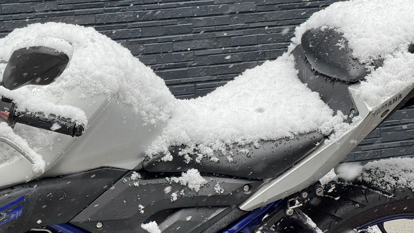 朝7時くらいに起きた時に、なんか外の雰囲気がいつもと違う気がして、もしかして?と思って窓を開けたら横殴りの雪が降りまくっていて、雪が軽く積もっていた。