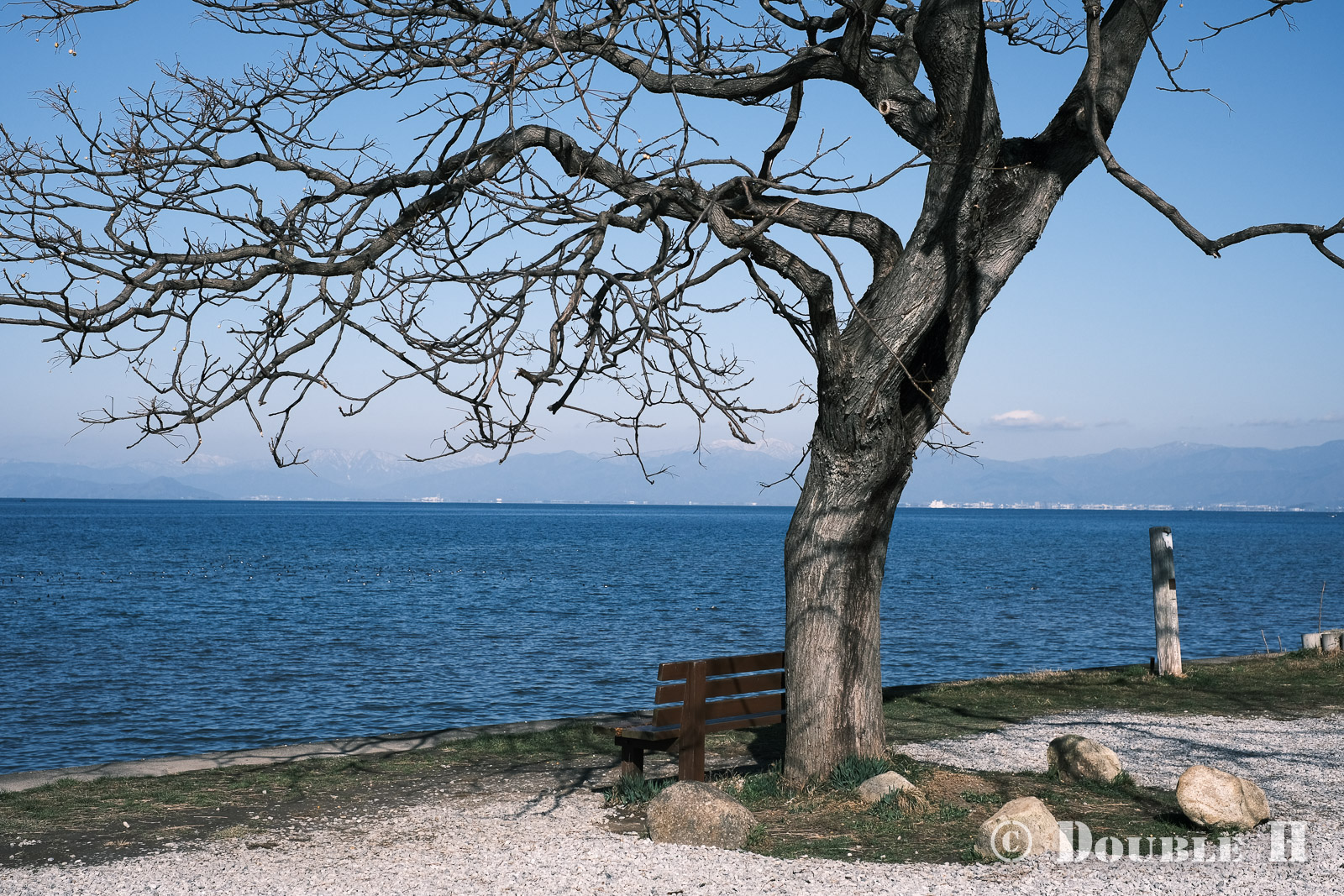 昨日の写真と同じ「あのベンチ」の横から琵琶湖を望んだ2枚。