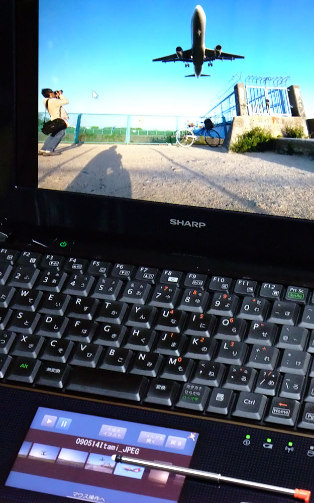 ネットブックの制約からくる狭い画面解像度だからこそ、光センサー液晶パッドをセカンダリディスプレイとして使えれば大きな付加価値になるし、さらに中央ボタン切り替えでタッチパネルとして使うことができれば、ノートパソコンに光センサー液晶パッドを載せる大きな意味が出てくる。