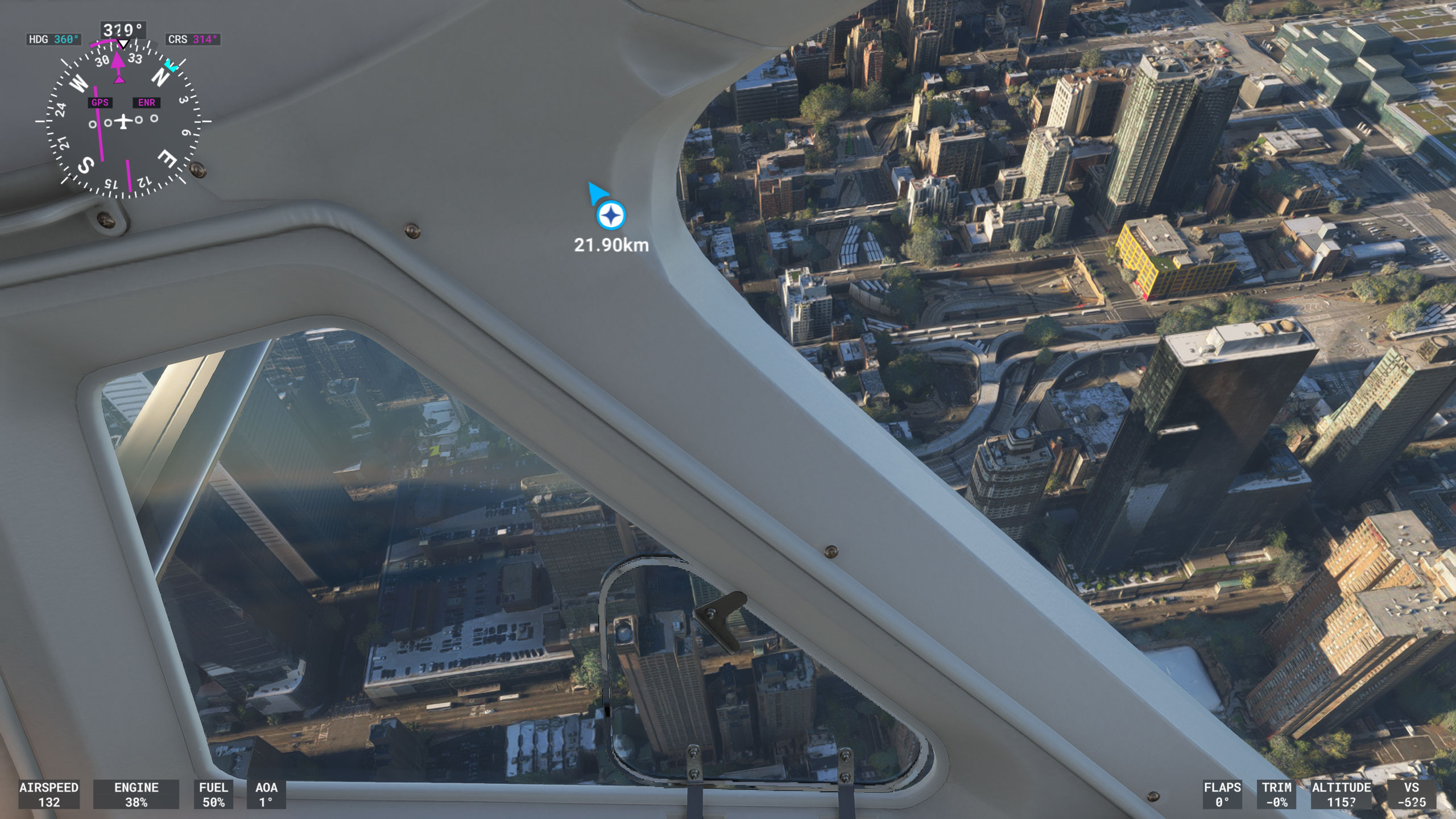 - 純正シーナリーでは手作業の入っていない地上建築物が自動生成されるエリアを飛ぶ場合
