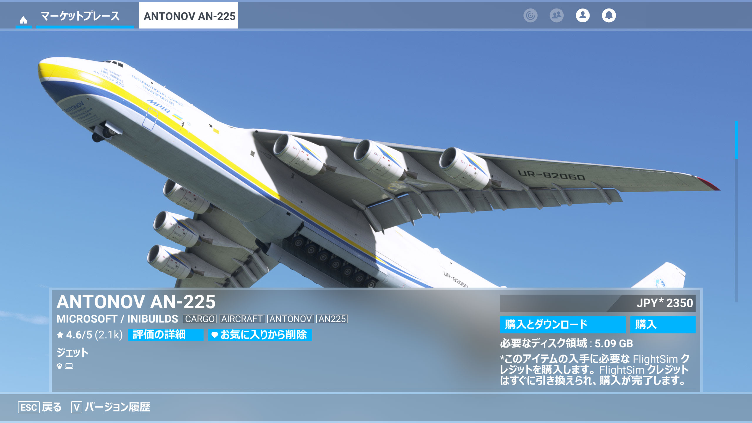 ロシアの侵略攻撃で史上最大の航空機 アントノフ An-225 ムリーヤが破壊されて、ちょうど2年。1年前に MSFS のマーケットプレイスに登場した「Antonov An-225 Mriya」 DLC の収益は全てアントノフ社に寄付され、An-225 復元プロジェクト資金として使われるとのことでしたが、ひとまずの期限が本日ということで、私も先日慌てて購入しました😓