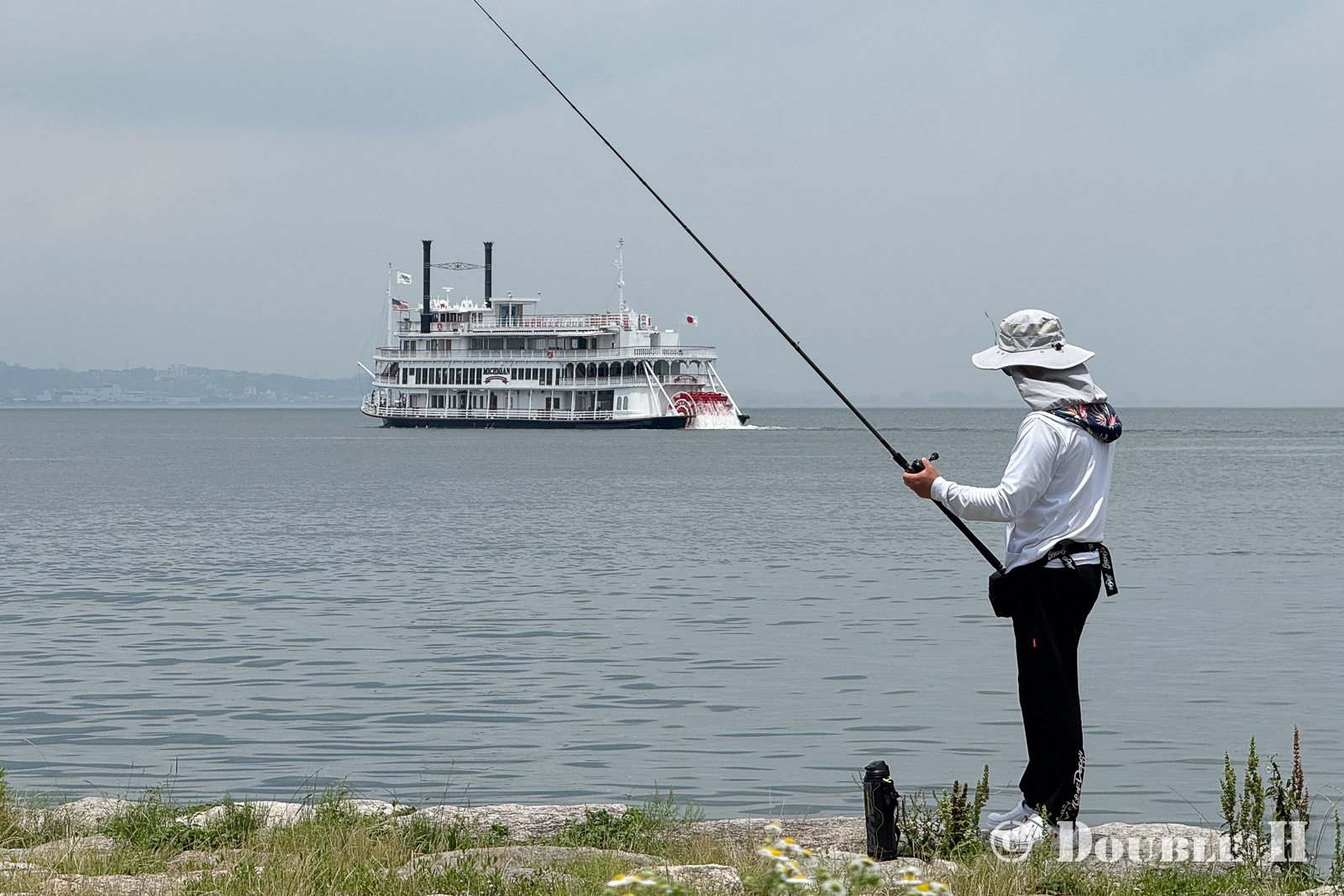 [Photo Diary] 欲張りすぎ July 25, 2024 琵琶湖観光船として有名なミシガンが大津港へ戻る前、 プリンスホテルの前の船着場に寄ったせいか、こちら側の岸辺近くを航行していた。 なので、ちょっと撮ろうと車の窓からスマホを突き出して、 「釣り人も前にいるから釣り人とミシガンを絡めて撮ろう」 そうスマホの望遠レンズで撮ってみたが、ちょっと画角の中に詰め込み感。 そんなに天気も良くなかったし、ミシガンだけだと寂しいかな?と思ったのだが、 うまく行かないものだ。 (iPhone 15 Pro Max / 望遠カメラ) タグ :#日記#琵琶湖#ミシガン#滋賀県#大津市