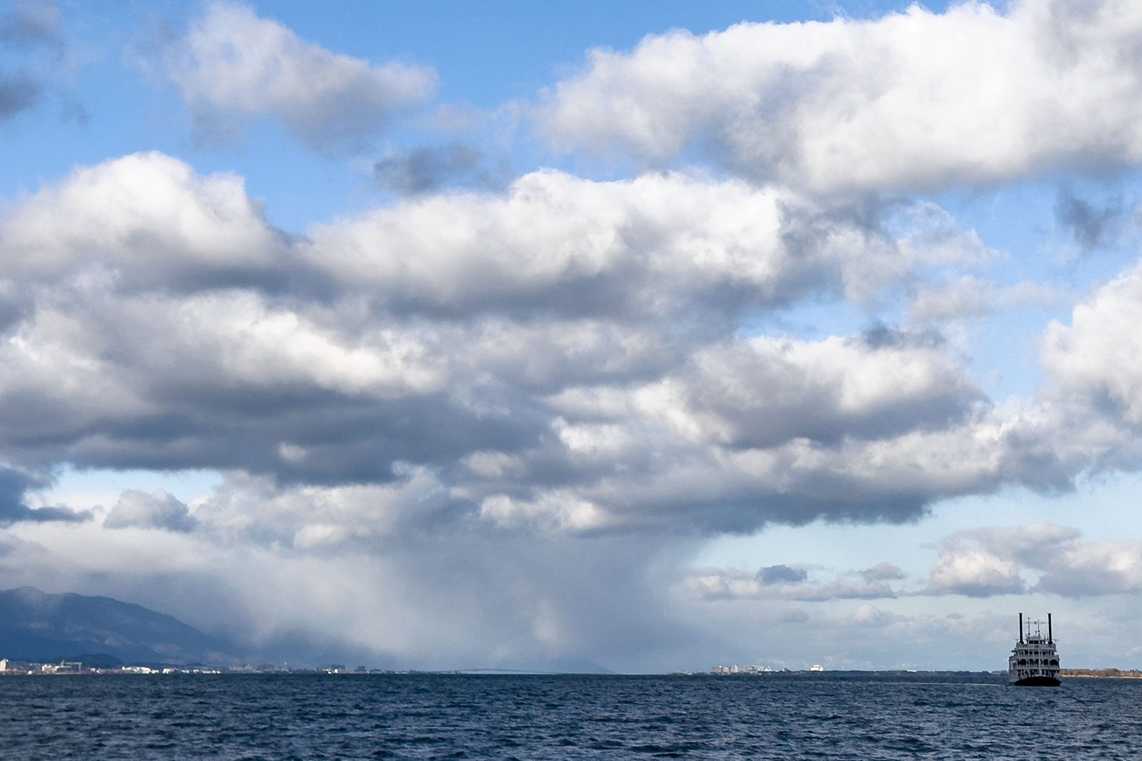 この日はスカイクリアで大津港近くから冠雪した伊吹山がクッキリ見えていた。